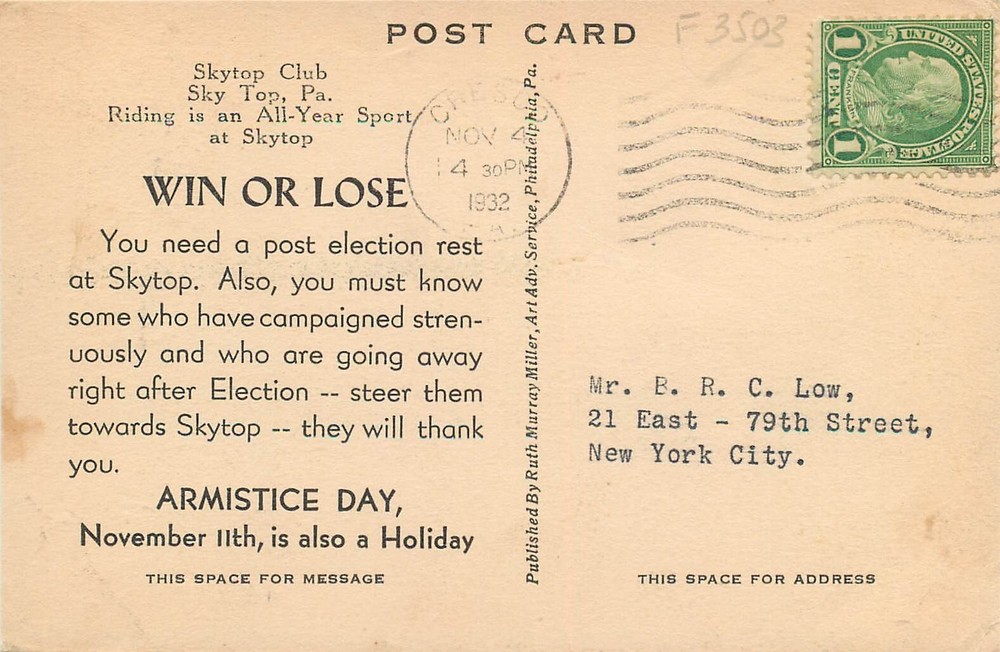 Skytop Club 1932 Post-Election Horse Riders Cresco Political Campaign