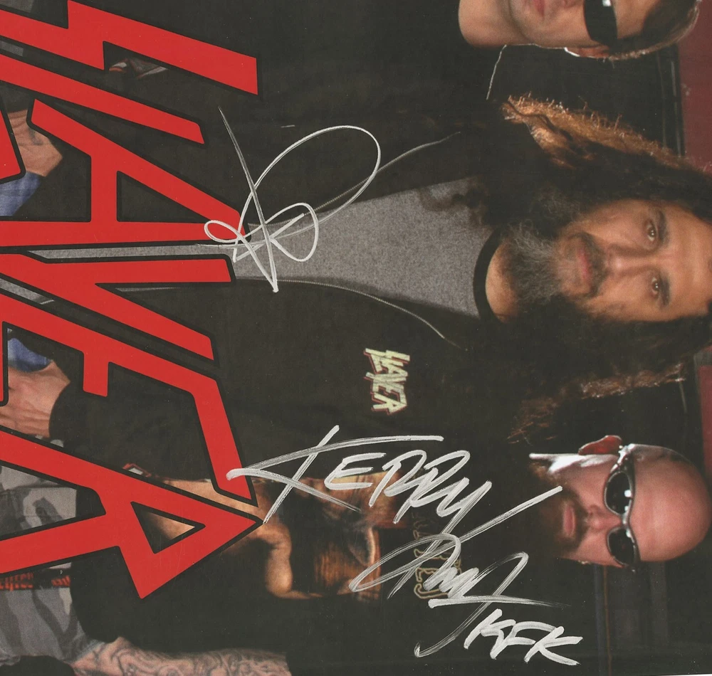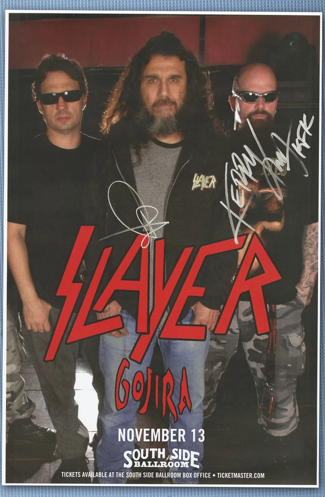 Slayer, Gojira 2013 concert poster Dallas, TX Signed by Kerry King and Tom Araya after the show Size 12" x 18"