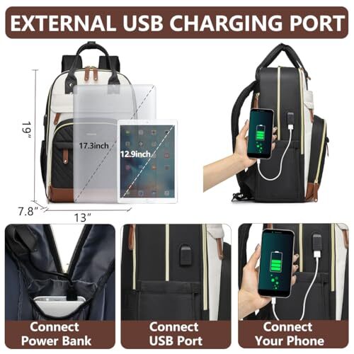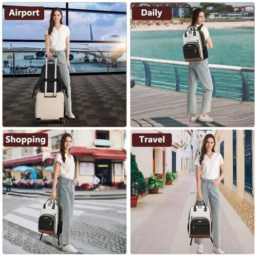 1. This laptop backpack is amazing! Spacious with so many pockets to keep everything organized—fits my 15.6-inch laptop perfectly. The USB charging port is super handy, and the waterproof design gives me peace of mind. Super comfy for travel or work, and the stylish beige-black-brown combo looks sleek. Highly recommend! Fast shipping and great seller too!