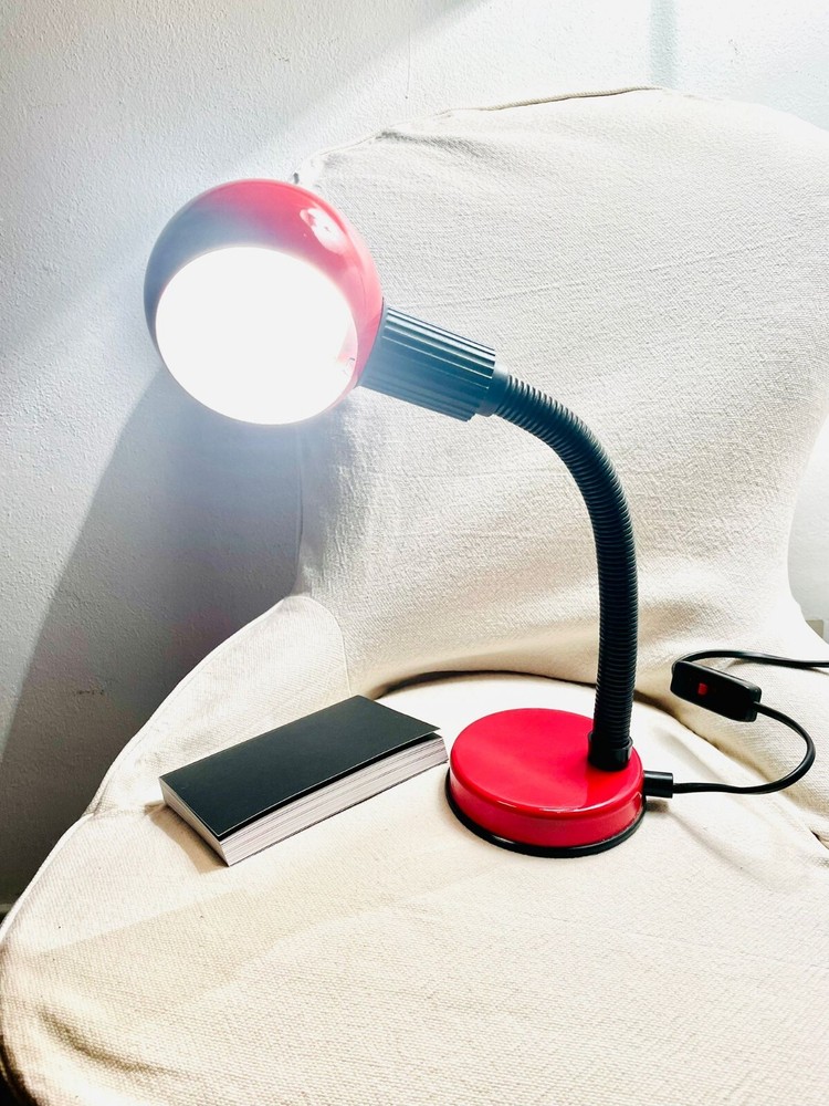 Lampada da tavolo modernariato. Lampada da tavolo, Iconico modello anni 80, perfettamente funzionante, ottimamente conservata e originale in ogni suo particolare. Regolabile a 360 gradi. Made in Italy. Colore rosso brillante, tipico dell'epoca. Fornita senza lampadina. Massima altezza 42 cm., diametro della base 11 cm..