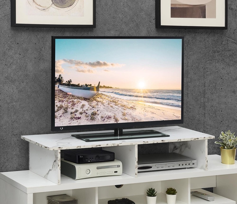 1. This TV riser is a game-changer! The sleek white faux marble looks so elegant and modern, instantly upgrading my living room. The perfect size for my 42" TV, and the extra storage underneath is super handy. Sturdy, easy to assemble, and fits any decor—totally worth it!