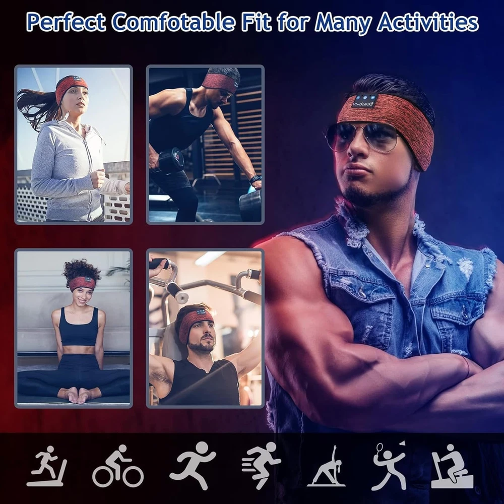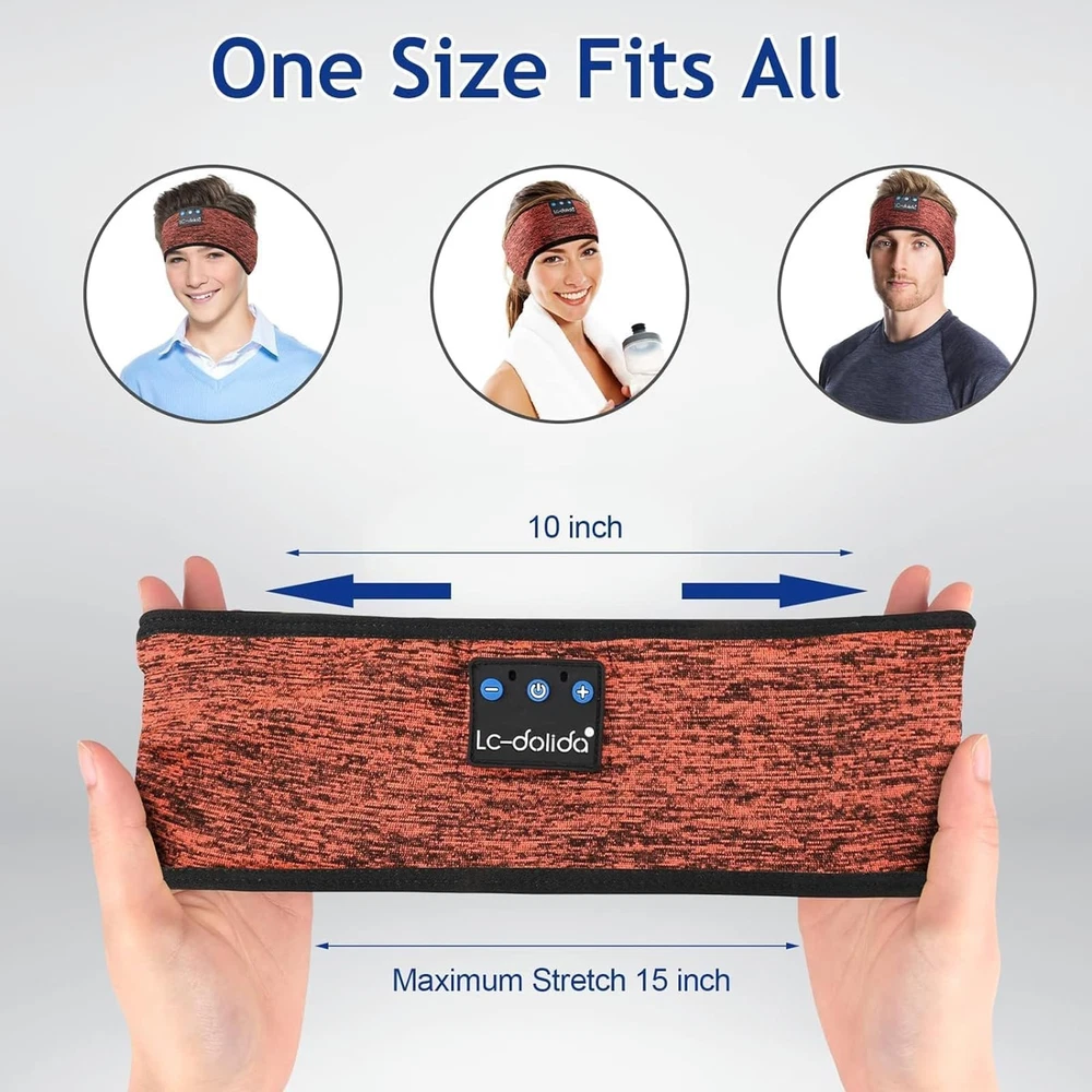 Sleep Headphones & Sports Bluetooth Headband & Bluetooth Sleep Mask 3 in 1: Sleep headphones feature a Breathable headband design with wireless headphones inside that allows you to listen to music without having to wear additional headphones and protects you from being disturbed by your mess hair and sweat. Sleep headphones headband headphones are perfectly suitable for travel, gym, running, yoga as well as sleeping. Sleep Headphones with Ultra-Thin Speakers: Sleep headphones bluetooth headband headphones integrate the earpieces into a soft fabric headband for your extra comfort and the speakers are so thin that you can't feel them even if you press your head against the pillow, perfect sleep headphones for side sleepers. Choose sleep headphones to keep you away from noisy environments and have a sweet dream. Bluetooth 5.2 and Long Battery Life: Headband headphones feature with latest Bluetooth 5.2 chip, fast paring speed, less power consumption, Bluetooth headband pair with any Bluetooth-enabled device that's within 45 feet, Compatible with Most Devices. Ensure stable clear sound and lossless music even if the headphones are in sports. Bluetooth headband to be charged for 2 hours, the talk time/music playback time can reach 10 hours. Comfortable, Breathable and Washable Bluetooth Headband: Sleep Bluetooth headband headphones are nestled into an extremely stretchy fabric and a breathable mesh lining, that's not only soft but also very skin-friendly, and will easily stretch to fit all head sizes. Because the earphones can be detached, You can wash and dry the bluetooth headband in any household machine without damaging the speakers. Best Gift Choice: If you have any quality problems or questions. Feel free to contact us, we are pleased to help you. Cool tech gifts for Thanksgiving Day, Christmas Stocking Stuffers, Secret Santa gifts, Birthday, Mother's Day, Valentine's Day, and many other gift-giving occasions.