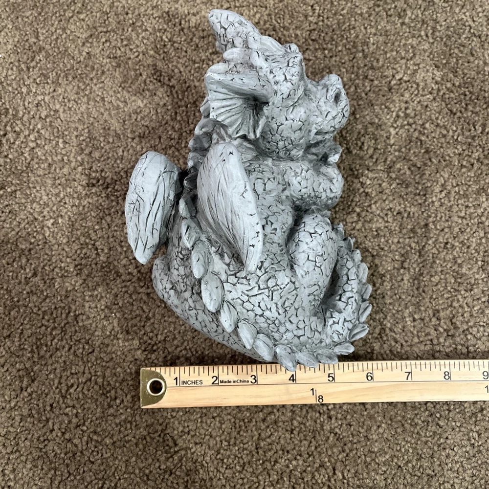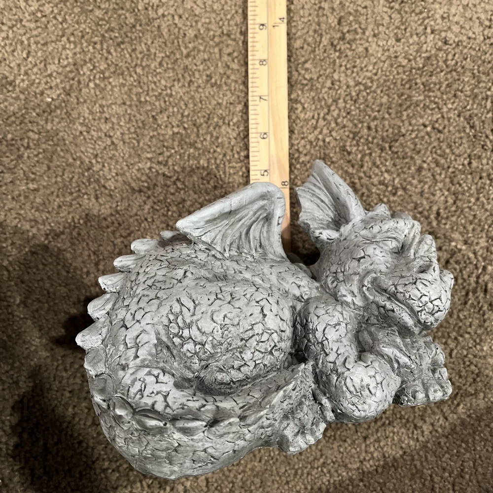 The Sleeping Baby Dragon Outdoor Statue is a medium-sized gray resin statue designed in the shape of a sleeping dragon, adding a touch of fantasy to any outdoor space like a porch, balcony, flower bed, or lawn. The modern-style statue features a textured finish and is suitable for both indoor and outdoor use, making it a versatile garden decoration. With easy care instructions, this mythical creature-themed statue brings a whimsical and enchanting element to your outdoor decor, perfect for dragon enthusiasts or those looking to add a unique touch to their living space.