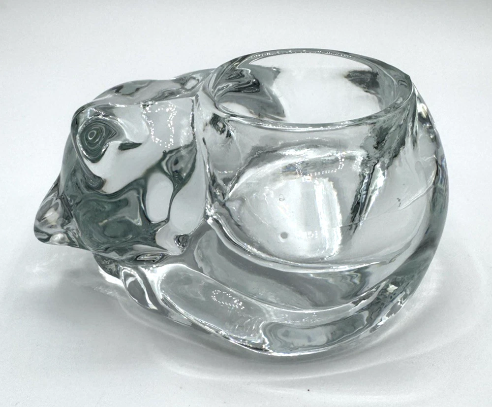 Theme:CatSuitable For:Votive CandleMaterial:GlassSize:SmallCountry/Region of Manufacture:United StatesAdditional Parts Required:NoFinish:SmoothPersonalize:NoBrand:Indiana GlassFeatures:SmoothSeller Notes:“no chips or cracks”Type:Candle HolderShape:CatAntique:NoMounting:Free StandingColor:ClearStyle:Mid Century ModernPattern:NoneRoom:Any RoomDepartment:Kids, AdultsCustomized:No