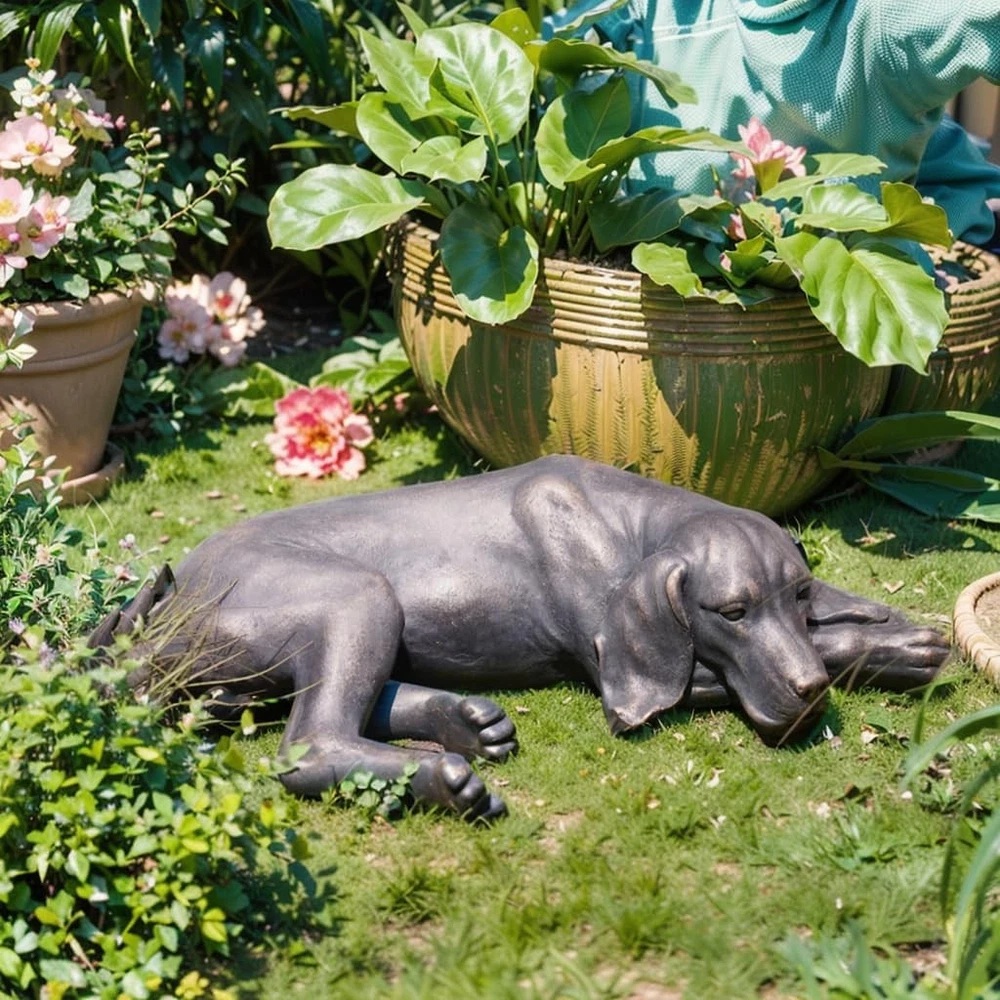 This sweet sleeping pup statue adds such peaceful charm to my garden! The lifelike details are incredibleâit looks so real curled up among my flowers. Perfect memorial for a beloved pet or just a cute decorative touch.
