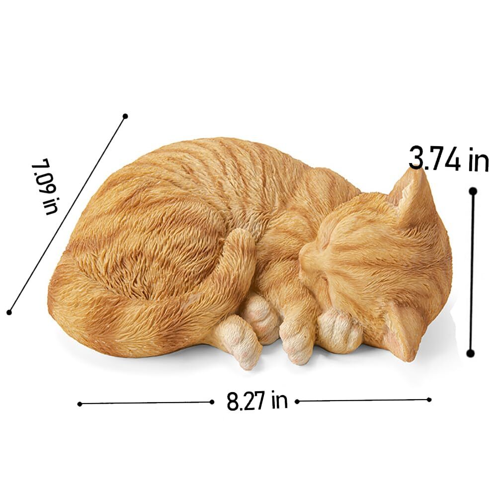 Sleeping Orange Tabby Cat Garden Statue Decor 8.27”L, Resin Realistic Sculptures Gift for Cats Lovers, Pet Memorial Stones for Loss of Pet, Kitty Figurine Art Decoration for Indoor Outdoor Home 【Excellent Quality】This unique tabby cat statue is carefully made of high-quality resin. The perfect finish and realistic texture bring fantastic charm to your garden, porch, courtyard or courtyard and get more attractive from the visitor who visited your garden. 【Material】Our cute cat garden statue is made of resin material, measuring 8.27”(L)x 3.74”(H)x 7.09”(W). 【Cat Memorial Statue】In addition to being decorated as outdoor statues, our cat products also have the attribute of cemetery, providing a memorial symbol for those cat lovers who lost their kittens. Putting this cute kitten in any corner of the house can bring you comfort and warmth, as if the cat has always been with you. 【Special Design】The intricate detailing of the cat's fur will bring this furry friend to life in any garden. Our sleeping tabby cat sculptures is a perfect gift for any occasion, great for people who love collecting animal figurines or cat Lover. 【Gift】Our tabby cat sculptures are a surprise for anyone who loves gardening, outdoor decorating, cat lovers, cat souvenirs. Suitable for housewarming, garden parties, Mother's Day, Father's Day, birthday, Halloween, Thanksgiving, Christmas, etc. Shipping We offer FREE shipping on all orders! We ship within Three business days of payment, usually sooner. We use a selection of shipping services such as UPS, FedEx, USPS etc. We only ship to the lower 48 states, no APO/FPO addresses or PO Boxes allowed. Local pickups and combined shipping options are not provided at this time. Return You can return a product for up to 30 days from the date you purchased it. Any product you return must be in the same condition you received it and in the original packaging. Please keep the receipt. Feedback Customer satisfaction is very important to us. If you have any problem with your order, please contact us and we will do our best to make you satisfied. Contact Us If you have any queries, please contact us via ebay. We usually respond within 24 hours on weekdays. Please visit our eBay store to check out other items for sale! Thank you for shopping at our store.