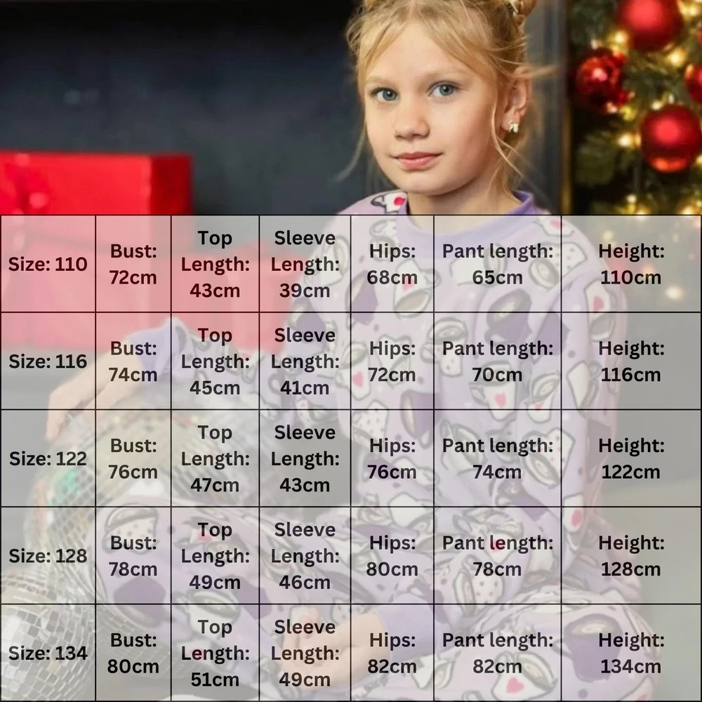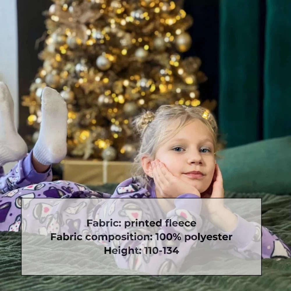 Material: Fleece General size: 110-134 Seazon:Winter Pattern:Graphic Print Clothing decoration:no decoration Size: 104, Bust: 70cm, Top Length: 41cm, Sleeve Length: 38cm, Hips: 64cm, Pant length: 62cm, Height: 104cm Size: 110, Bust: 72cm, Top Length: 43cm, Sleeve Length: 39cm, Hips: 68cm, Pant length: 65cm, Height: 110cm Size: 116, Bust: 74cm, Top Length: 45cm, Sleeve Length: 41cm, Hips: 72cm, Pant length: 70cm, Height: 116cm Size: 122, Bust: 76cm, Top Length: 47cm, Sleeve Length: 43cm, Hips: 76cm, Pant length: 74cm, Height: 122cm Size: 128, Bust: 78cm, Top Length: 49cm, Sleeve Length: 46cm, Hips: 80cm, Pant length: 78cm, Height: 128cm Size: 134, Bust: 80cm, Top Length: 51cm, Sleeve Length: 49cm, Hips: 82cm, Pant length: 82cm, Height: 134cm Check out our adorable baby girl pajamas! This stylish and comfortable set will ensure your little princess a good night's sleep. With a variety of colors and designs, our pajamas will be your daughter's favorite choice. Buy at a good price and provide your girl with the best comfort and coziness during sleep!