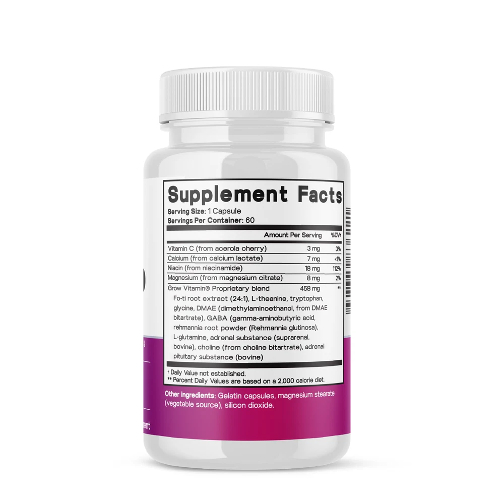GROW ELEVATED WELLNESS Formulated for Restful, Recharging Sleep Support Grow SLEEP PRO-HEALTH is an advanced nighttime calm & recovery blend crafted with amino acids, herbal extracts, and key micronutrients to help you relax at night so you can show up refreshed the next day.* Advanced Nighttime Calm & Recovery Blend 458 mg Premium Sleep Blend 60 Capsules ? 60 Servings Key Sleep Support Highlights 15 Calming Ingredients Includes L-theanine, tryptophan, GABA, Fo-ti root, and more to support a relaxed nighttime state.* Supports Restful Sleep* Helps You Unwind* Non-GMO Ingredients Made in the USA Why You?ll Love SLEEP PRO-HEALTH Thoughtfully designed for those evenings when you want to ease into relaxation and prepare your body and mind for a restorative night?s rest.* Benefit 01 Promotes Calm Nighttime Relaxation* A synergistic blend of L-theanine, tryptophan, GABA, and glycine supports a sense of calm so you can gently transition from busy days into a more relaxed nighttime rhythm.* Benefit 02 Supports Restful, Productive Sleep Cycles* Crafted to complement your body?s natural ?rest & digest? response, helping you make the most of the hours you spend asleep and wake up feeling more ready for the day ahead.* Benefit 03 Nightly Recovery & Reset* Adrenal and pituitary glandulars, Fo-ti root, and supportive nutrients like vitamin C, B3 (niacin), and magnesium help nourish your system while you rest, so you can feel more balanced by morning.* Benefit 04 Easy, Once-Daily Capsule Just one capsule taken about 30 minutes before bedtime fits seamlessly into your evening routine?no complicated protocols required. What?s Inside Each Capsule A premium blend of vitamins, minerals, amino acids, herbal extracts, and glandulars?carefully selected to support your nighttime relaxation experience.* Core Vitamins & Minerals Foundational Micronutrient Support Vitamin C (from acerola cherry) ? 3 mg (3% DV) Calcium (from calcium lactate) ? 7 mg (<1% DV) Niacin (from niacinamide) ? 18 mg (112% DV) Magnesium (from magnesium citrate) ? 8 mg (2% DV) Everyday micronutrient support* Backed by recognizable forms Grow Vitamin® Proprietary Blend 458 mg Premium Nighttime Blend Fo-ti root extract (24:1) L-theanine & tryptophan Glycine & GABA (gamma-aminobutyric acid) DMAE (dimethylaminoethanol, from DMAE bitartrate) Rehmannia root powder ( Rehmannia glutinosa ) L-glutamine Adrenal substance (suprarenal, bovine) Choline (from choline bitartrate) Adrenal pituitary substance (bovine) 15 calming ingredients* Amino acids & botanicals Designed for nighttime use Other ingredients: Gelatin capsules, magnesium stearate (vegetable source), silicon dioxide. How to Use Simple, consistent habits can make all the difference in your sleep routine. Take 1 capsule daily , about 30 minutes before bedtime . Swallow with a glass of water, with or without a light snack as tolerated. Use consistently for best results and pair with calm, screen-light?reduced evenings. Pro Tip: For a more complete nighttime ritual, combine SLEEP PRO-HEALTH with relaxing habits like dimming the lights, reading, gentle stretching, or breathwork. Supplement Facts Serving size & key information for SLEEP PRO-HEALTH. Supplement Facts Amount Per Serving %DV? Serving Size 1 Capsule Servings Per Container 60 Vitamin C (from acerola cherry) 3 mg 3% Calcium (from calcium lactate) 7 mg <1% Niacin (from niacinamide) 18 mg 112% Magnesium (from magnesium citrate) 8 mg 2% Grow Vitamin® Proprietary Blend 458 mg ** ? Percent Daily Values are based on a 2,000 calorie diet. ** Daily Value not established. Why Choose Grow SLEEP PRO-HEALTH? Thoughtful formulation, quality sourcing, and a modern wellness-first philosophy. Advanced nighttime calm & recovery blend made with 15 key ingredients for relaxation and nighttime support.* Non-GMO ingredients and produced in the USA . Crafted in facilities that follow GMP (Good Manufacturing Practice) guidelines for quality. Balanced for daily use at just one capsule per serving. Designed to pair with other healthy sleep habits as part of an overall wellness routine. Created by Grow to align with our mission: Elevate Wellness with Precision Science. Who Is This For? SLEEP PRO-HEALTH may be a great fit if you: Want support for relaxing in the evening after mentally or physically demanding days.* Prefer a capsule formula that combines amino acids, herbs, and glandulars in one serving.* Are building a more intentional bedtime routine focused on calm, comfort, and recovery.* Appreciate supplements that prioritize thoughtfully selected ingredients over unnecessary fillers. Frequently Asked Questions Have questions about how to use SLEEP PRO-HEALTH? Start here. When should I take SLEEP PRO-HEALTH? For most people, taking one capsule about 30 minutes before bedtime works well. You can adjust slightly earlier or later depending on how your body responds. Always follow the directions on the label, and speak with your healthcare provider if you have questions about timing or use. Can I take this every night? SLEEP PRO-HEALTH is formulated as a daily-use nighttime support supplement . Many people choose to take it consistently as part of their evening routine. If you are pregnant, nursing, taking medications, or have a medical condition, consult your healthcare professional before use. Does this product contain melatonin? No. This formula focuses on a melatonin-free blend of amino acids, botanicals, micronutrients, and glandulars intended to support relaxation and nighttime comfort without relying on melatonin.* Is this suitable for vegans or vegetarians? This product is encapsulated in gelatin capsules and contains bovine-derived glandular ingredients , so it is not suitable for strict vegans or vegetarians. Caution & Important Information Please read before use. Caution: Adults only. Do not exceed the recommended serving. Not intended for pregnant or nursing women. If you have a medical condition (especially endocrine, hormonal, or psychiatric conditio