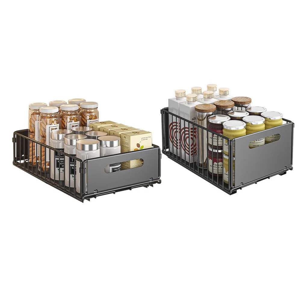 Description: Product name: Pull out cabinet organizer Style: Modern and minimalist Function: Foldable Materials: Carbon steel Classification of storage racks: Floor mount Packing list: 1pc/2pcs pull out cabinet organizer Drill-Free Installation: Our pull-out cabinet organizers eliminate complex assembly steps and the need for tools and screws. Simply remove the nanometer adhesive film from the guides, place them in your cabinet, and install the drawer quickly. Size Specifications: Small product dimensions: Width: 24.5cm, Depth: 37.5cm, Height: 10cm. Large product dimensions: Width: 24.5cm, Depth: 37.5cm, Height: 19cm. Measure your cabinet before purchase. Smooth, Quiet Sliding: Industrial-ball bearings inside the pull-out drawers ensure seamless sliding even with heavy loads, providing quiet operation without collision noise. Strong Weight Capacity: Crafted from heavy-duty carbon steel, our pull-out storage shelves are waterproof, corrosion-resistant, and built to withstand moisture for easy maintenance and long-lasting durability. Space-Saving Storage: Organize snacks, spices, pots, groceries, beverages, toiletries, towels, and more with this versatile drawer-style basket storage rack in kitchens, bathrooms, offices, closets, bedrooms, living rooms, and wardrobes.