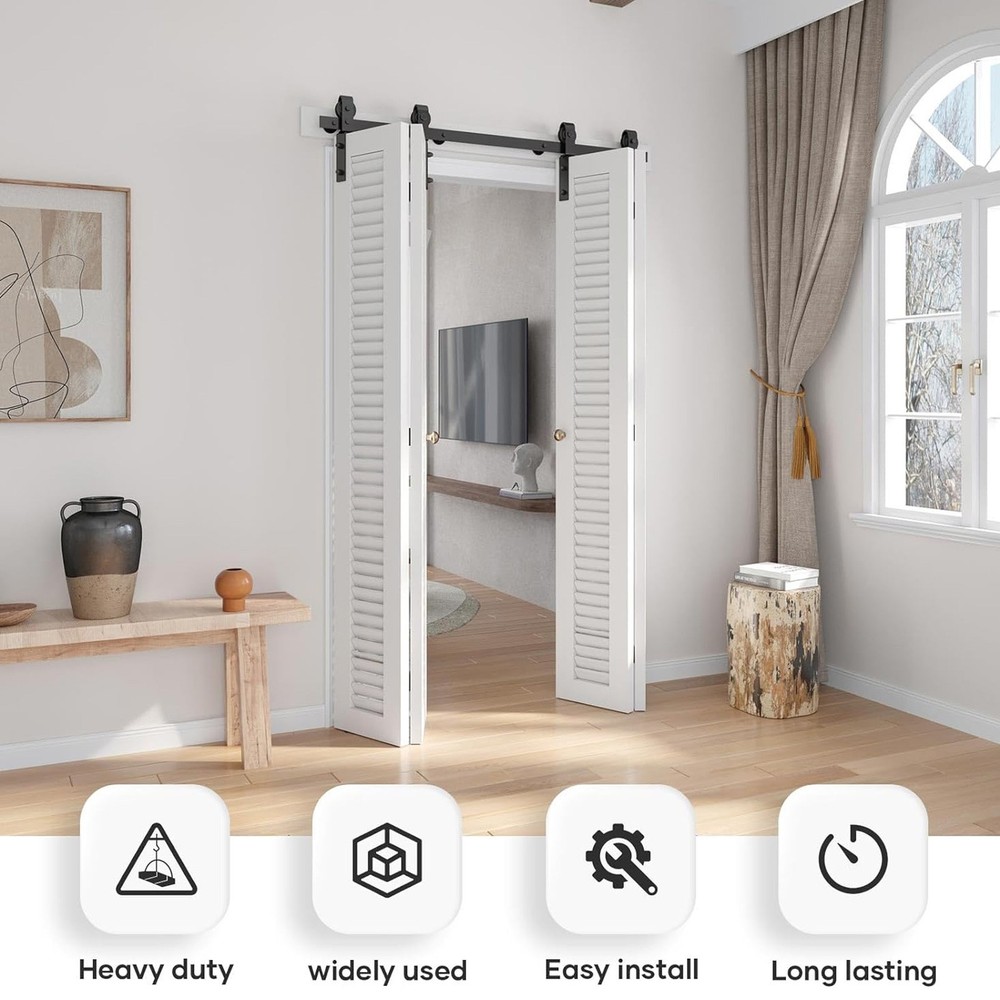 $ 30.5770in Bifold Sliding Door Track,Sliding barn door hardware kit,Black,Brand New-