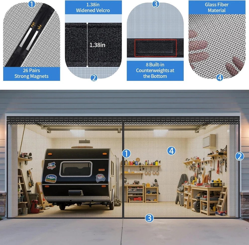 Sliding Garage Door Screen Fiberglass Mesh 16x7 Ft Magnetic Track Bug Protection ‹ › ‹ › ‹ › ‹ › ‹ › ‹ › ‹ › ‹ › ‹ › Sliding Garage Door Screen - Fiberglass Mesh 16x7 Ft - Magnetic Track Bug Protection Product Features: Smooth Sliding Curtain Track: Enjoy effortless horizontal movement with our top-mounted sliding track, allowing complete access to your garage. Enhanced Adhesive Durability: Innovative sliding mechanism distributes weight evenly, preventing adhesive detachment and ensuring a long-lasting performance. Adjustable Width for Perfect Fit: Designed with a 1-2cm extra width allowance to ensure proper coverage and eliminate installation errors. High-Quality Fiberglass Mesh Construction: Crafted from fiberglass, providing enhanced durability and effective insect protection while maintaining excellent airflow. Easy Installation and Maintenance: Comes with all necessary hardware and detailed instructions for quick setup. Easy to clean for hassle-free maintenance. Benefits: Effortless access to your garage without hindrance. Durable and resilient against wear and tear. Prevents common installation issues with adjustable features. Insect protection while enhancing garage ventilation. Simple installation process that anyone can achieve. Why Choose Our Sliding Garage Door Screen? Say goodbye to annoying bugs and welcome fresh air with our Sliding Garage Door Screen. The superior fiberglass material combined with an innovative sliding mechanism ensures durability and ease of use, making garage access a breeze. Its adjustable width guarantees a perfect fit for a sleek look without leaving gaps. Perfect for busy garages or multi-use spaces, this door screen is more than just a bug deterrent; it’s a functional addition to your home. Experience the effortless convenience it brings - order your Sliding Garage Door Screen today and transform your garage experience! Shipping Free & Fast Shipping - We offer free shipping to most of the USA with a normal delivery time of 3-7 days. However, due to the current situation, additional delivery time (up to 3 weeks) may be required for some items. Alternative Carriers - We may use alternative carriers (e.g. USPS, FedEx, UPS, etc.) to ensure your package arrives safely and on time. Due to the use of multiple carriers, we are unable to provide a tracking number automatically. Handling Time - Orders are processed and shipped within 1-2 business days of receiving cleared payment. Shipping Restrictions - Shipping to Alaska, Hawaii, Puerto Rico, Guam, and other US territories may incur shipping charges or delivery restrictions. Please contact us before ordering, or your order can be refunded/cancelled. State Restrictions - There may be restrictions based on your state of purchase. For example, certain items may not be shipped to California due to state regulations. Contact for Tracking Updates - If you require tracking updates or have any concerns about the delivery of your order, please feel free to contact us, and we will be happy to assist you. Return 30-Day Hassle-Free Returns - We want you to be completely satisfied with your purchase. If you are not, you can return the item within 30 days of receiving it for a full refund or exchange. Easy Return Process - To start a return, simply contact us and we will provide you with a prepaid return shipping label and detailed instructions. Restocking Fee - There are no restocking fees for returns. However, the buyer is responsible for return shipping costs if the return is not due to a seller's error. Refund Processing Time - Refunds will be processed within 5 business days of receiving the returned item in its condition. Payment We accept all major credit cards, PayPal, and Apple Pay for your convenience. Your payment information is secure and encrypted to ensure a safe and seamless transaction. Please complete your payment within 3 days of purchase to avoid any delays in shipping. Feedback Your feedback is extremely important to us. We strive to provide the best products and customer service possible. If you are satisfied with your purchase, please take a moment to leave us a positive review. If you have any concerns or issues with your order, please contact us before leaving negative feedback. We are committed to resolving any problems and ensuring your satisfaction. Contact Us If you have any questions or concerns, please feel free to out to our customer support team. You can contact us through the eBay messaging system. We are available Monday to Friday, 9:00 am to 5:00 pm EST, and we will do our best to respond to your inquiry within 24 hours. Buy it now and enjoy a pleasant shopping experience! Unit Quantity: 1.0 count Suitable For: Garage Door,2-Car Garage Openings,Standard Garage Openings Material: Fiberglass Features: Easy To Install,Smooth Sliding Curtain Track,Enhanced Adhesive Durability,High-Quality Fiberglass Mesh Construction Color: Black Item Height: 218 Centimeters Item Length: 7 ft Type: Garage Door Screen Number in Pack: 1 Item Depth: 1 in Item Thickness: 0.1 in Item Weight: 9.5 lb Unit Type: lb