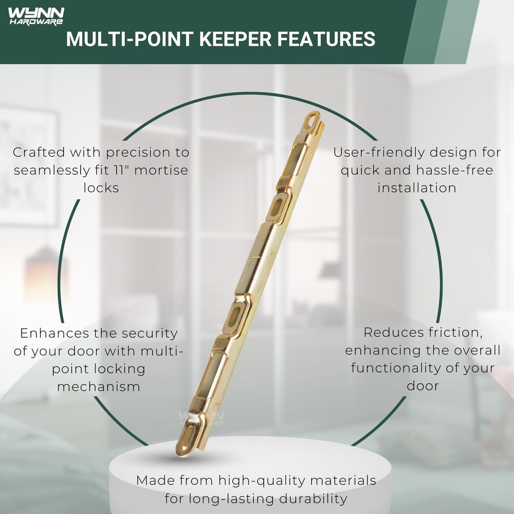 Sliding Glass Patio Door Multi-Point 10-7/8" Keeper for 2 Point Mortise Lock | Keeper Replacement for Mortise Lock Two Point | Fix and Repair Door Hardware Lock Latch Keeper PRECISE REPLACEMENT: Specifically engineered as a keeper replacement for 2 Point Mortise Locks, ensuring a seamless fit and optimal functionality. ENHANCED SECURITY: Reinforce the security of your door with a sturdy and dependable keeper designed to work in conjunction with your mortise lock. DURABLE CONSTRUCTION: Crafted with high-quality materials, this keeper is built to withstand regular use and provide long-lasting performance. EASY INSTALLATION: The keeper is designed for hassle-free installation, allowing you to quickly and efficiently replace your existing one. VERSATILE COMPATIBILITY: Compatible with a range of mortise lock systems, making it a versatile solution for various door configurations. DIMENSIONAL SPECIFICATIONS: The keeper is precision-engineered to meet the exact specifications required for a secure fit, ensuring reliable operation. Elevate your door's security and functionality with our Keeper for 2 Point Mortise Lock. Designed as a precise replacement, it offers enhanced security and durability, providing peace of mind for you and your family. PRECISE REPLACEMENT: Specifically engineered as a keeper replacement for 2 Point Mortise Locks, ensuring a seamless fit and optimal functionality. ENHANCED SECURITY: Reinforce the security of your door with a sturdy and dependable keeper designed to work in conjunction with your mortise lock. DURABLE CONSTRUCTION: Crafted with high-quality materials, this keeper is built to withstand regular use and provide long-lasting performance. EASY INSTALLATION: The keeper is designed for hassle-free installation, allowing you to quickly and efficiently replace your existing one. VERSATILE COMPATIBILITY: Compatible with a range of mortise lock systems, making it a versatile solution for various door configurations. DIMENSIONAL SPECIFICATIONS: The keeper is precision-engineered to meet the exact specifications required for a secure fit, ensuring reliable operation. Elevate your door's security and functionality with our Keeper for 2 Point Mortise Lock. Designed as a precise replacement, it offers enhanced security and durability, providing peace of mind for you and your family.