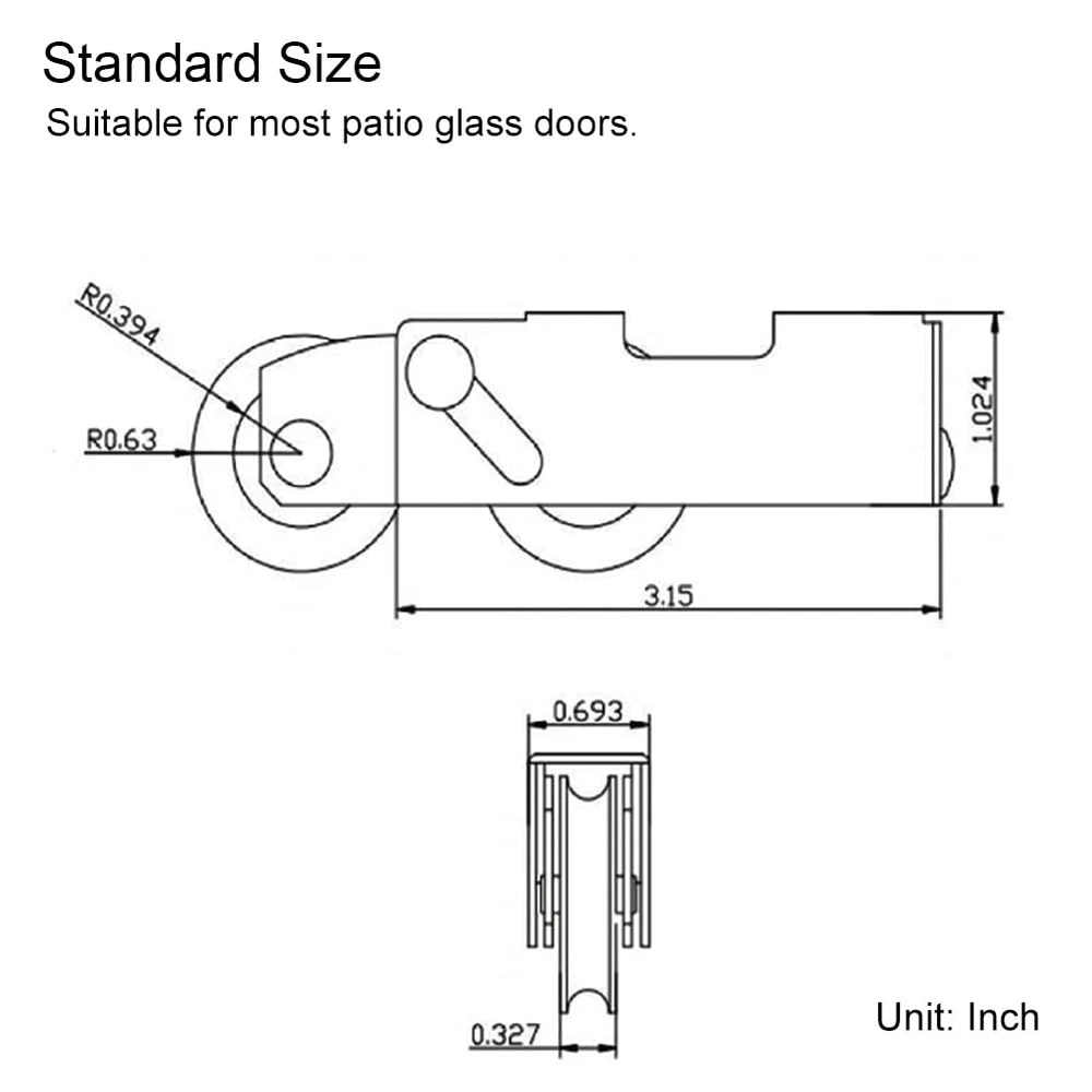 đ ăSliding Door Roller ăIncludes 2 x Sliding Patio Door Tandem Roller, used for replacing damaged or old roller assemblies on sliding patio doors. đ ăStandard Sizeă The roller assembly contains 5/16-inch wheel thickness x 1-1/4-inch diameter steel ball wheel bearings. đ ăSolid ConstructionăMade of premium steel, the overall structure of the roller is very strong. High quality radial ball bearings still working after 100,000 cycles for 2 rollers bear 300 pounds. We insists all bearings made from Heat Treated Bearing Steel. đ ăEasy to InstallăRemove damaged or old tandem roller assemblies in patio sliding glass doors, clean the track to ensure no solid particles, then install new sliding door roller assembly. đ ăWidely UsedăSliding patio door roller are suitable for sliding glass doors, screen doors, windows, closets and more.