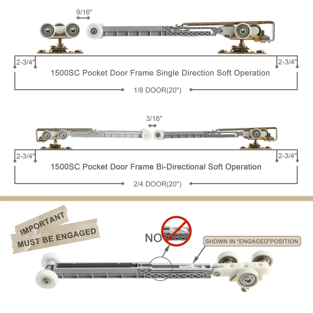 Sliding Pocket Door Soft Close Hanger Fit Johnson Part #1060 Replacement Kit,...