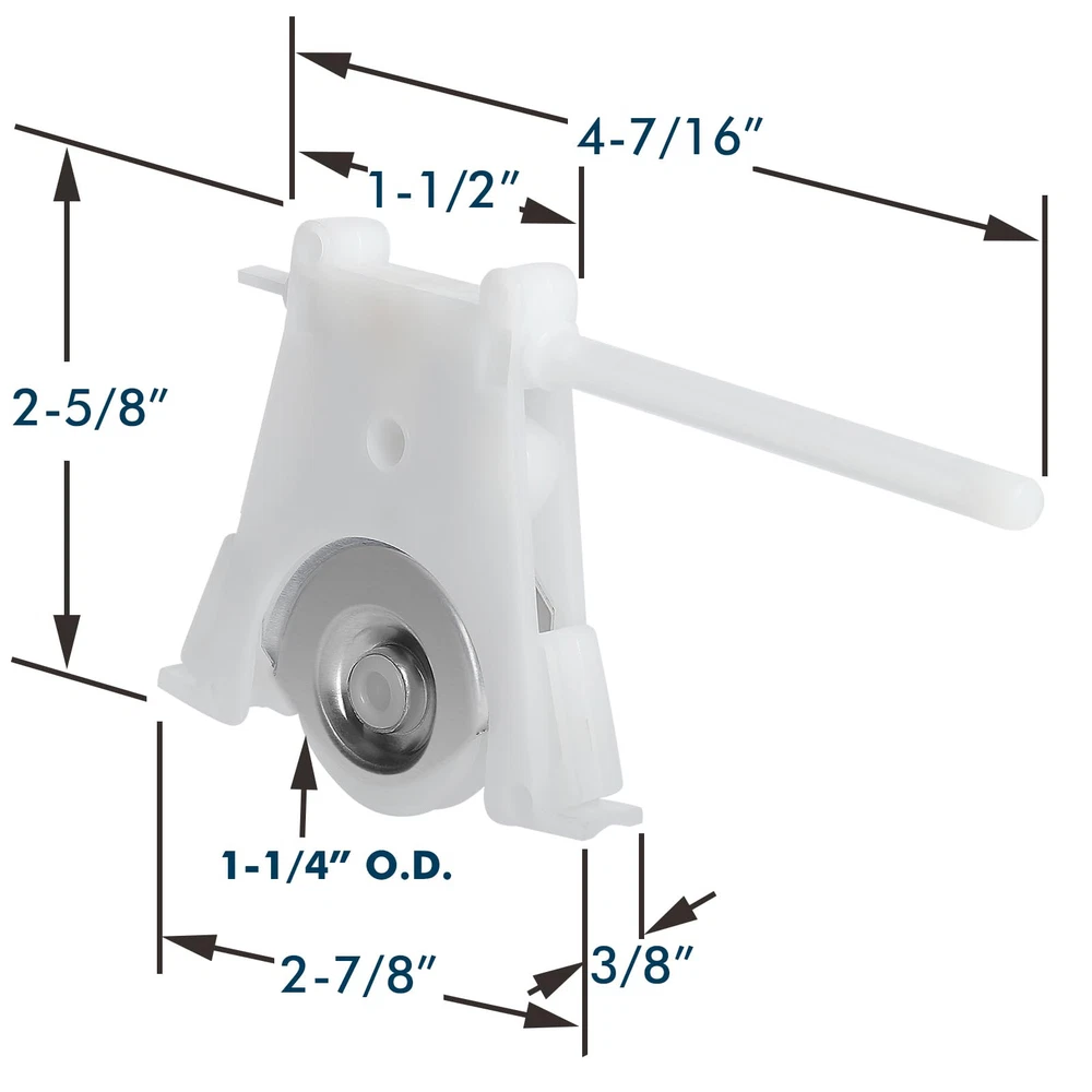 Replace Old or Damaged Rollers: Commonly used to replace bottom screen rollers for Andersen 200 Series Perma-Shield Gliding, 200 Series Narroline Gliding, 400 Series Frenchwood Gliding and 400 Series Frenchwood Hinged Doors. Works with: Fit Andersen gliding patio door insect screens manufactured from 1991 to Present. Works with top screen rollers part #1997063. Edge Adjustable Housing: Features a nylon housing with a nylon concave wheel that measures 1-1/4" in diameter and 5/16" thick. The edge adjustment allows for quick and easy adjustments with a flat head screwdriver. Easy Snap In Installation: The roller housing has two tabs that lock under the frame to hold in place, they prevent the roller from coming straight up. Package Includes: Includes 2 pack of screen rollers, we recommend replacing both rollers at the same time.