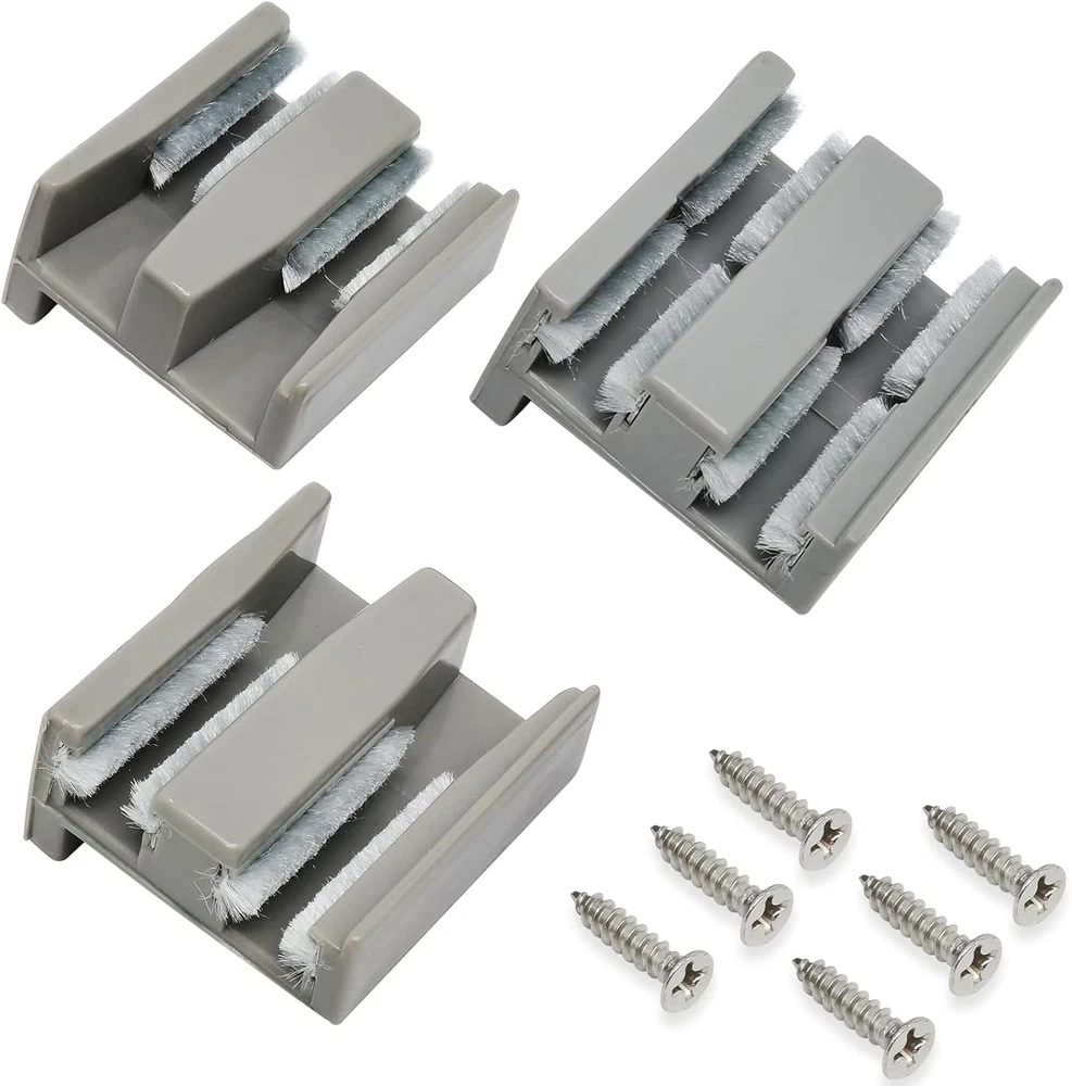 Sliding Shower Door Bottom Guide Assembly with Grey Fluff,8Mm(1/3Inch),Plastic Package Included:3pcs Shower Room Double Track Bottom Guides With Matching Screws. Material:Plastic, Sturdy Construction, Can Be Used For a Long Time. Size:Length:51mm/2.00inch,Width:47mm/1.85inch,Height:28mm/1.10inch、18mm/0.70inch. Applicable Glass Thickness:8mm(1/3inch). Function:Helps Keep Sliding Door Panels Centered On Their Respective Tracks.