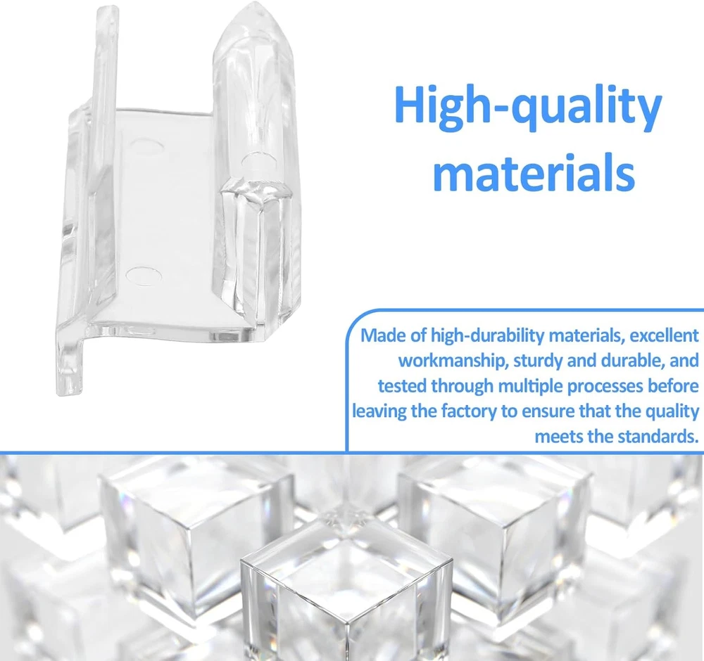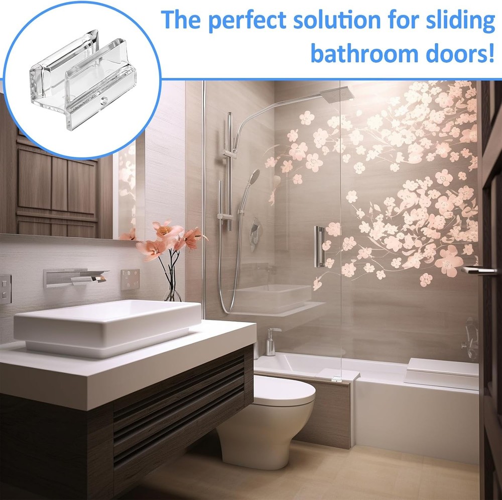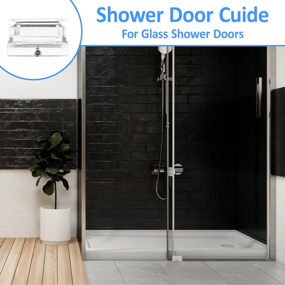 About this item Sliding Door Guide: The shower door guide ensures your sliding shower door stays properly aligned, making installation a breeze. This shower door bottom guide is designed to fit the 3/8 inch channel of glass shower doors, providing a smooth and secure sliding experience. Sturdy Material: The shower door parts bottom guide is made of durable clear acrylic material to ensure longevity and reliability. Easy to Use: This sliding door bottom guide is a good replacement for your existing sliding door shower door guide. It is easy to install and enhances the sliding performance of both shower doors. Two screws are included in the package, allowing you to choose what best suits your needs. Size: 0.71 x 2 x 0.98 inches. It is suitable for glass up to 3/8 inch thick, which is a good fit for most sliding shower doors and does not take up too much space. Dimensions: 0.71 x 2 x 0.98 inches.