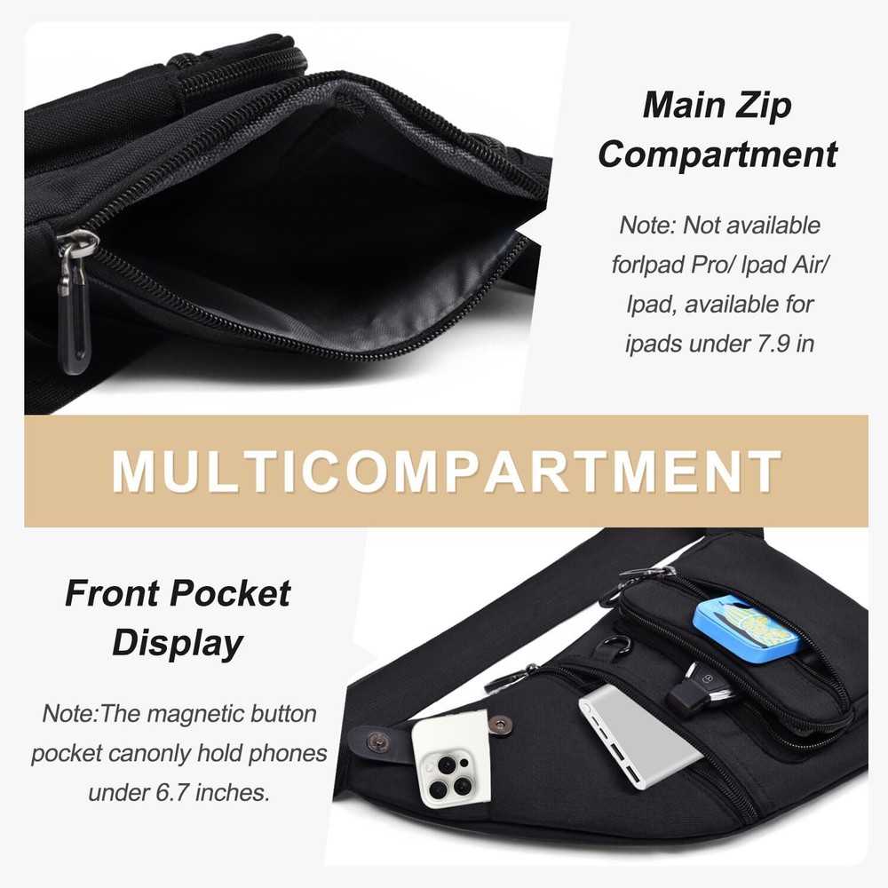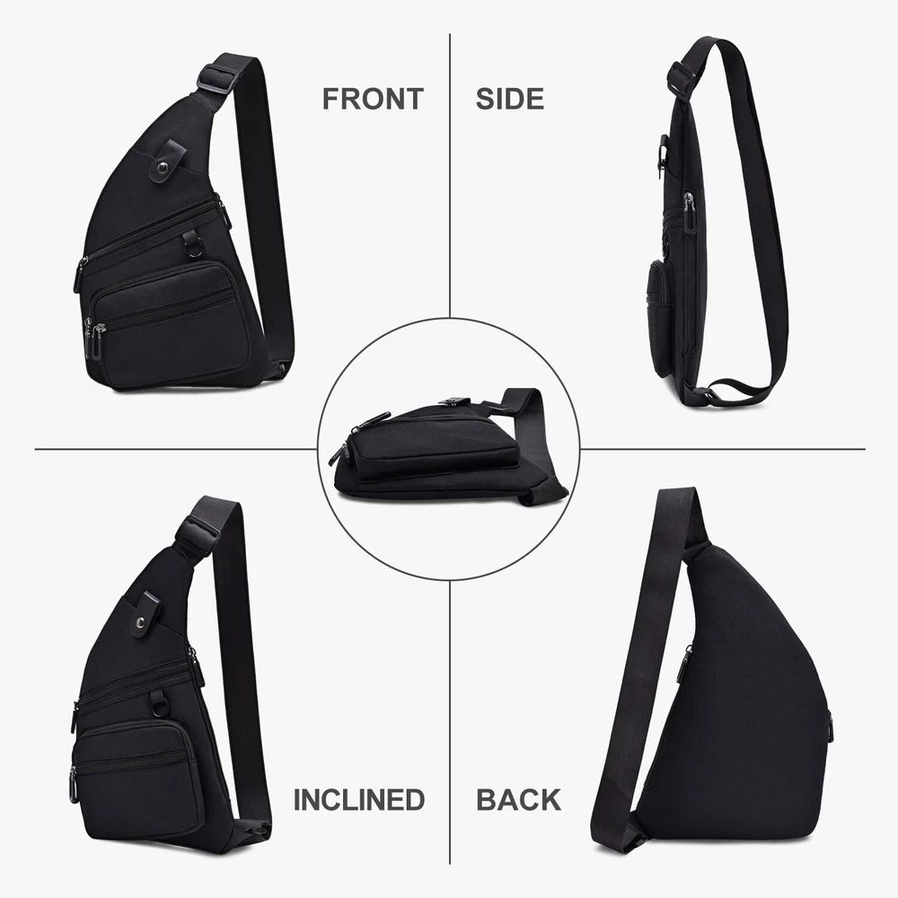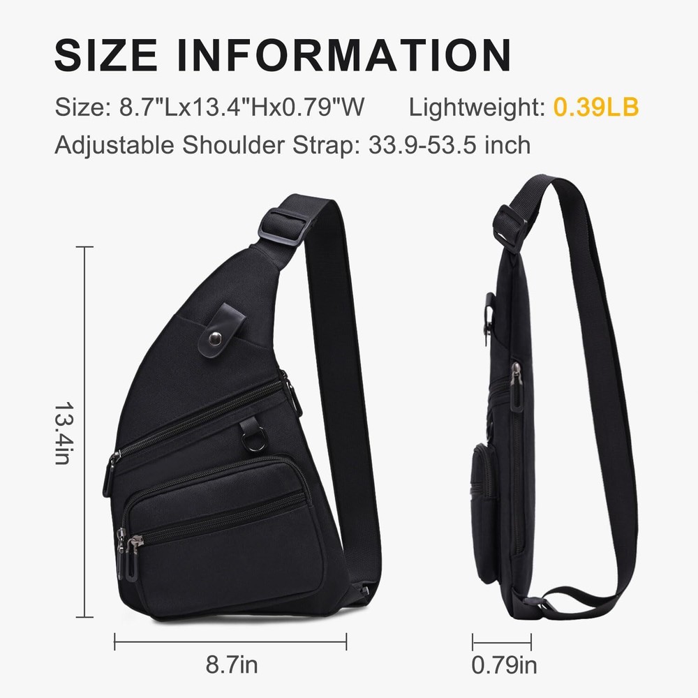 ✅【Slim Crossbody Bag】13.4"H x 8.3"L x 0.79"W, Lightweight: 0.37 lb, adjustable shoulder strap: 35.4-59 inch, helps relieve the stress from your shoulders and makes it comfortable to wear even when loaded with your gear. Anti-theft sling bag can be worn under your jacket or coat. ✅【Multi-Pockets Sling Bag】1* Main zipper pocket, 1* magnetic snap phone pocket (can be storage most mobile phone), 3* front zipper pockets, 1* small inner pocket (inside the main pocket), perfectly storage for Valuables and private items like wallet, ID Cards, Phone, cash, power bank, earphone. ✅【Durable Zipper & Buckle】Our crossbody bag featured with durable zippers and buckles. A smooth zipper for easy access to your items and never be afraid of losing. Strong buckles, easy to adjust, you can wear the sling bag tight or loose, up or down. ✅【Lightweight and Durable】This sling bag adopts sturdy oxford and polyester materials which make it more portable while you go out with it. Should clean easy with damp rag if needed. Color is perfect won't show dirty easily. ✅【Versatile Sling Bag】Fashionable Crossbody bags for men can be worn as sling bag, chest bag, over the shoulder bag, personal flex bag, anti-theft bag, etc. Great for daily commute, traveling, Riding, Hiking, or engaging in outdoor activities.