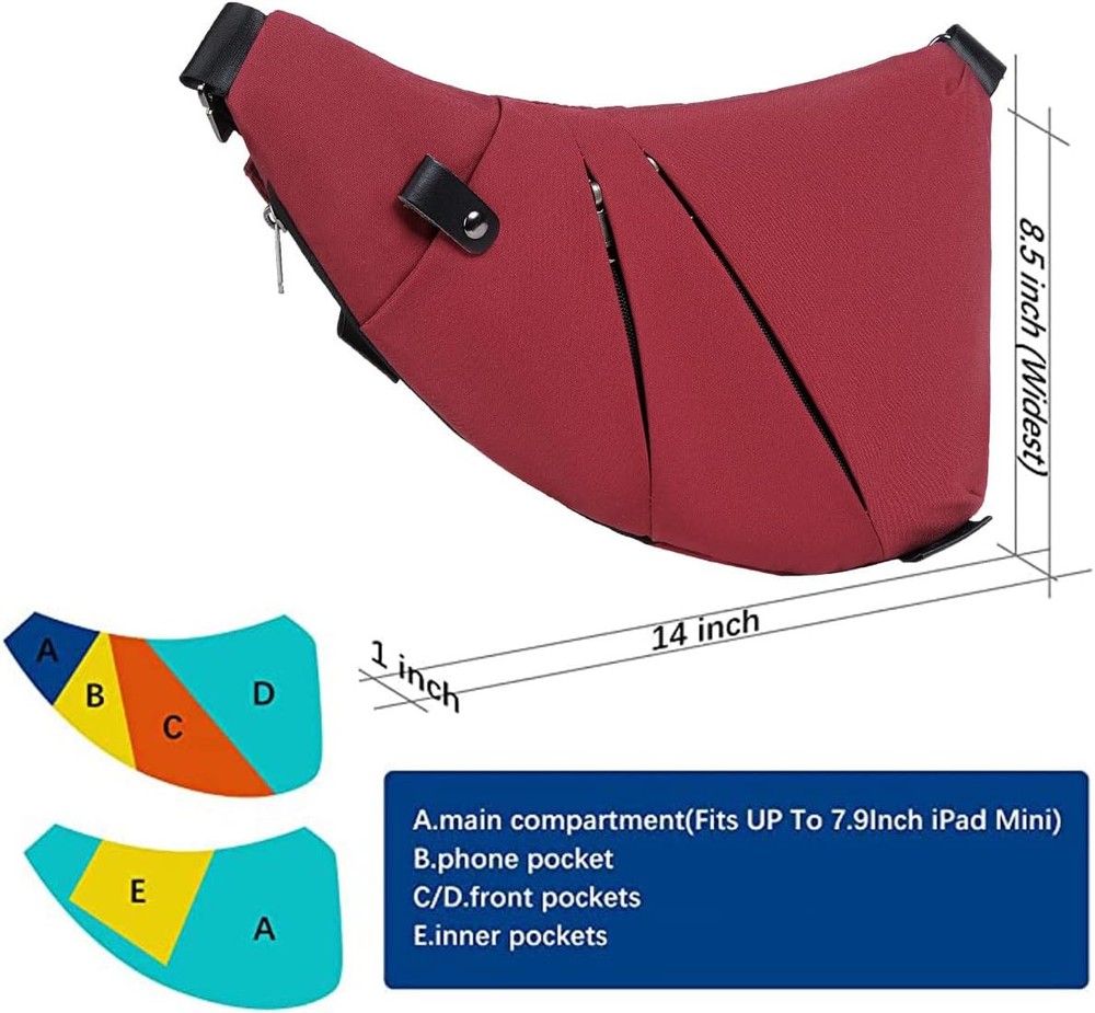 Sling Bag - Slim Crossbody Shoulder Backpack Anti-Theft Personal Wine Red Product Details Product Dimensions : 8.5 x 1 x 14 inches; 7.68 ounces Department : Unisex Manufacturer : Qidelong