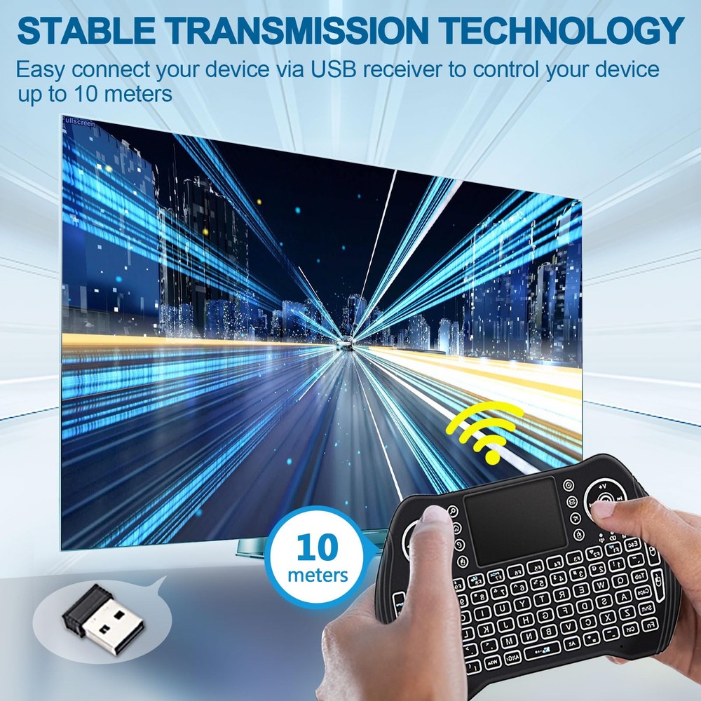 This wireless keyboard and mouse combo is a game-changer! Super easy to set up—just plug in the USB receiver and you're ready to go. The built-in rechargeable battery is convenient, and the 10-meter range gives you plenty of freedom. Its compact size makes it perfect for travel or couch use, replacing bulky setups. The touchpad works smoothly, and the backlit keys are great for low-light typing. A must-have for anyone who wants a sleek, portable control solution!