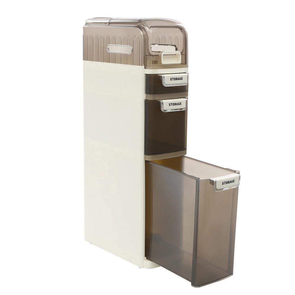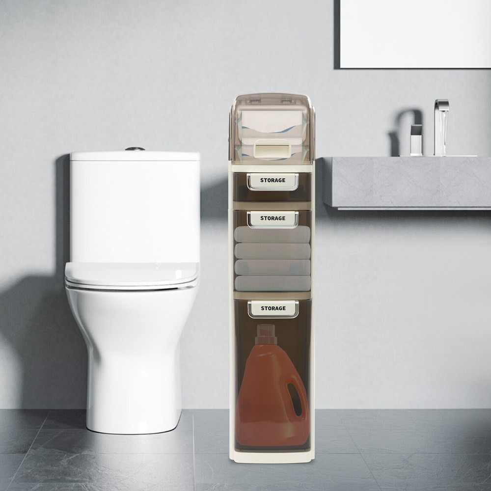 Slim Bathroom Storage Cabinet, Narrow Bathroom Storage, Mobile Storage Organizer Description This 4-tier storage cart is both stylish and practical. It is designed to make full use of space and achieves fine classification storage to make your life and work more orderly. The modern style shows an exquisite charm, expressing a refined sense of fashion. This product has a slim body with a large capacity , making your life more organized and tidy, get it now! Key Features Premium Material: The product is made of PET and PP, which has high strength, good corrosion resistance, and rust-resistant , water-proof, dust-proof, and moisture-proof performance, and can be used for the long term. Modern Appearance: The pleasing white color, rectangular structure, and smooth lines add beauty and exquisite elements to your room. It plays a unique decorative role while using, bringing an exquisite charm into your home. Storage Assistant: The top groove and 3 drawers of different sizes are convenient for you to store different sizes and types of things. In addition, the top storage box allows you to store toilet paper, etc., which has paper outlets on both sides. Excellent Load-bearing Capacity: Thanks to its thickened material and rectangular structure, this product has excellent load-bearing capa city, so you can use it with confidence. Easy to Move: Four silent wheels make the whole product easily moved from one place to another while better protecting the floor from scratches, greatly enhancing efficiency and convenience. Space-saving: Its slim body and 4-tier structure make full use of vertical space, making it ideal for bathrooms or other tight spaces, maximizing space utilization. Ready to Use: It does not need assembly, so you can directly use it after receiving and cleaning it, greatly saving time and effort. Convenient to Use: The ergonomic handle on each drawer makes it easier to pull out and close the drawer, which not only provides convenience but also improves the aesthetics of the entire product. Easy to Clean: With a smooth surface and detachable drawers, it is very easy to clean with a damp cloth (not included). Ideal Gift: With a delicate outlook and practical storage function, it is a wonderful housewarming, wedding, or festival gift for your families, friends, or colleagues. Details Visible Drawers: The semi-clear drawer allows you to see what is inside, making it easy to find and replenish daily necessities promptly. Smooth Edges: They no t only increase the beauty of the product but also improve the safety of use. Application It can be placed in bathrooms, kitchens, bedrooms, living rooms, and other places to store towels, cleaning products, laundry detergent, dishes, watches, jewelry, ties, remote controls, books, cosmetics, skincare products, essential oils, paper towels, toiletries, spices, snacks, beverages, and more. Specifications Style: Modern Color: White Material: PET, PP Mount Type: Freestanding Assembly Required: No Number of Drawers: 3 Number of Wheels: 4 Number of Tiers: 4 Product Size: 18*41*78cm/ 7.09 * 16.14 * 30.71 inch Package Size: 83*45*22.5cm/ 32.68 * 17.72 * 8.86 inch Gross Weight: 4.9kg/ 10.8 lbs Net Weight: 4.66kg/ 10.27 lbs Package Included 1* 4-tier Storage Cart Notes Please check the size carefully before ordering the product. Please note that this product does not include other items shown in the picture. Please allow the slight color difference caused by the shooting light and 1-3cm error due to manual measurement, and make sure you do not mind before you order. Payment Delivery details Terms of sales About us Contact us Payment We accept ebay payment 。 Fees such as import duties, taxes are not included in the item price or shipping costs. These charges are the buyer's responsibility. Delivery details Shipping: 2-9 working days to: USA Terms of sales We maintain high standards of excellence and strive for hundred percent customer satisfaction. Feedback is very important to us. We hope that you contact us immediately before you give neutral or negative feedback, so that we can address your concerns. It is impossible to address issues if we do not know about them! About us Your satis faction is our ultimate goal. We work hard to earn your trust and future business. Our certified technicians have tested each item before shipping. The unit comes with 1 year limited warranty on all manufacturing defects. a) If you receive a defective item, you may return it or ask for a discount. Please contact us within 14 days after you receive the package. b) What you returned must be intact and in its original packaging as re? u. Customer is responsible for shipping costs of the returned item. c) We will cover the cost of shipping back t with the shipping rate indicated in the registration page. We will send you a new unit or refund the full payment you paid. Thank you. Contact us Business Hour Business Hour: Monday To Friday: 8:30 AM to 5:00 PM (Beijing China time) Due to time zones, our reply to your questions may not be immediately. But within above working time, we will reply your email within 24 hours. If it's non-workdays, please kindly be patient and wait till Monday. Please contact us with ebay message. Please feel free to contact us if you have any questions. Monday To Friday: 8:30 AM to 5:00 PM (Beijing China time) Due to time zones, our reply to your questions may not be immediately. But within above working time, we will reply your email within 24 hours. If it's non-workdays, please kindly be patient and wait till Monday. Please contact us with ebay message. Please feel free to contact us if you have any questions. * Feature * Creative Design,Beautiful Appearance Material PET, PP Color Beige Brand Unbranded