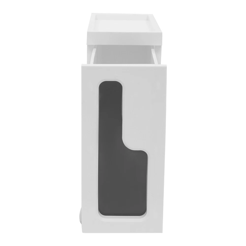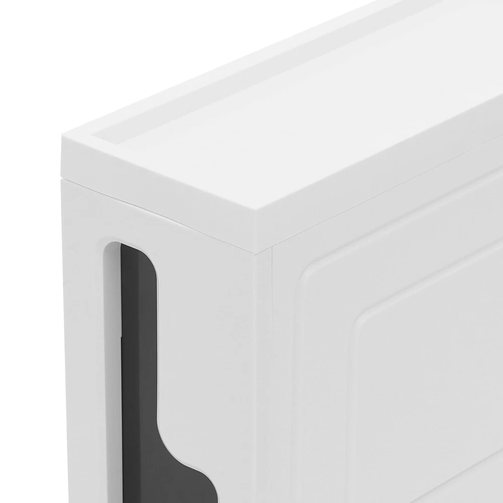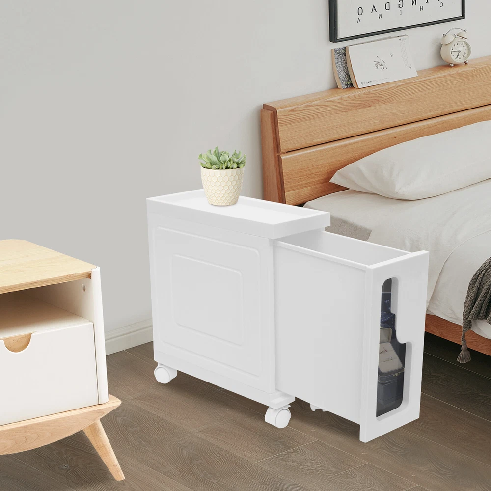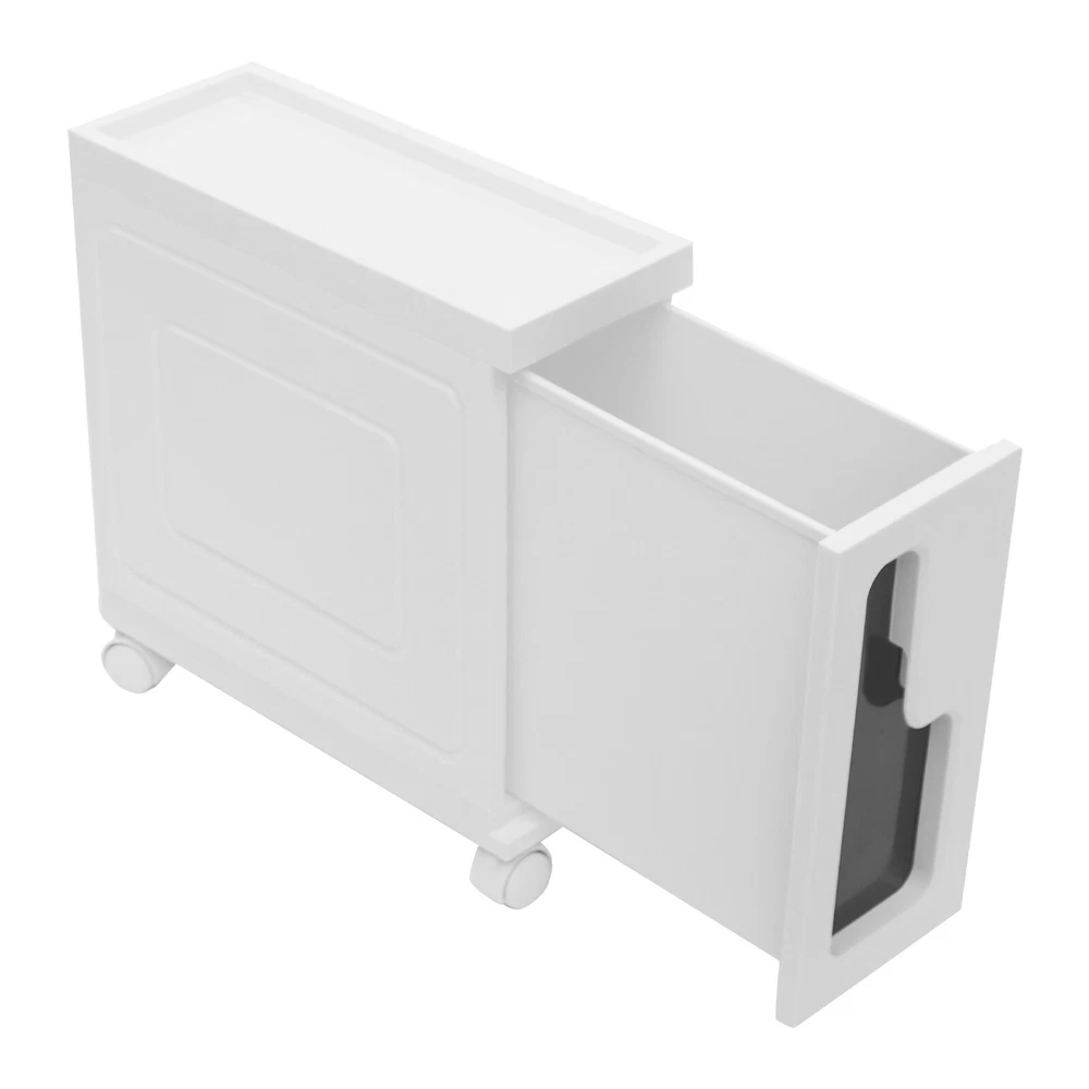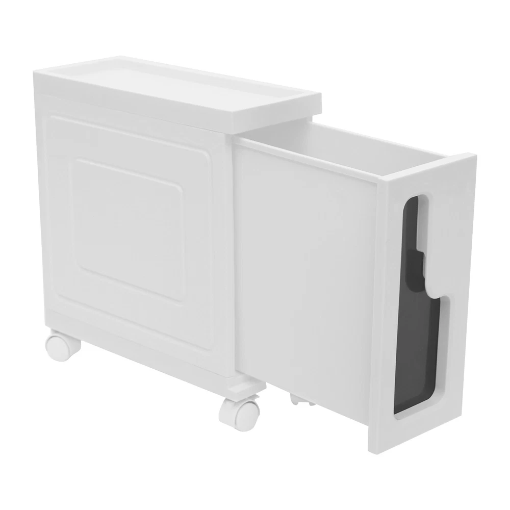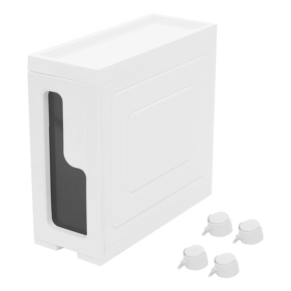 This slim storage cabinet is a game-changer for small spaces! The sturdy build holds all my bathroom essentials without taking up much room, and the smooth-rolling wheels make rearranging a breeze. It keeps everything tidy while adding a modern touch—perfect for anyone needing extra storage that looks great!