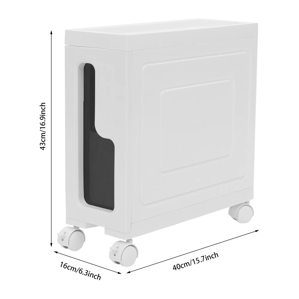 Storage Cabinet, Slim Bathroom Storage Cabinet, Bathroom Storage Floor Cabinet Storage Cabinet, Slim Bathroom Storage Cabinet, Bathroom Storage Floor Cabinet Description Made of high-strength material, this storage cabinet is sturdy and durable, easy to organize various daily necessities, and the universal wheels design makes it more convenient to move. It not only saves space, but also adds a sense of neatness and beauty to the interior environment, which is an indispensable helper for you to create an ideal home. Key Features Last for Years: Made of excellent PP, it is impact resistant, abrasion resistant, fade resistant, with a strong load-bearing capacity and high durability, not easy to deform, to ensure your long-term use. User Friendly: With 4 universal wheels (2 with brakes), it is convenient for you to move, fix, and adjust the position at any time, which can be used as a rolling trolley, bathroom cart, kitchen cart, dining trolley, service trolley, storage rack, tool trolley and so on. Stable Support: The stable frame and sturdy material make it easy to hold up to 66.14 lbs, allowing you to rest assured that you can place toiletries, towels, crafts, plants, and tools (all not included) on it. Humanized Design: The sealed design effectively waterproofs and better protects the items from getting wet, making it suitable for bathrooms, kitchens, bedrooms, and so on. Space Saving: With a compact design (15.7*6.3*16.9 inches), it is suitable for placing in narrow spaces, such as kitchen corners, bathrooms, and so on. Effortless Cleaning: Thanks to its smooth surface and simple structure, you can wipe it clean with a wet rag(not included). Easy to Assemble: Simple structure, complete installation accessories and detailed installation instructions can help you complete the installation quickly and put it into use. Modern Style: The simple appearance design is suitable for a variety of home styles and enhances the overall aesthetics of the space. Customer Service: We aim to provide quality products and services. If you have any problems, please feel free to contact us. We will reply and solve the problem for you as soon as possible. Details Thoughtful Slot: It can effectively prevent the drawer from falling off and ensure more stable placement of items. Enlarged Drawer Handle: The enlarged L-shaped drawer handle makes it easier to access items. Increased Edges: They prevent items placed on the top from falling, giving you peace of mind when using it. Application It can be used as a bathroom cabinet to store toiletries, cosmetics, towels, etc. It can also be used as a kitchen storage cabinet to store food, spices, cutlery, etc. It can also be used as a bedroom nightstand to store skincare products, watches, jewelry, etc., as well as as a living room sideboard to store books, remotes, toys, pet supplies, etc. Specification Mount Type: Floorstanding Assembly Required: Yes Number of Tiers: 1 Number of Universal Wheels: 4 (2 with Brakes) Material: PP Color: White, Black Shape: Rectangular Overall Load-capacity: 30kg/66.14lbs Product Size: 40*16*43cm/15.7*6.3*16.9in Package Size: 41.5*39*17.5cm/16.34*15.35*6.89in Gross weight: 2.4kg/5.29lbs Net weight: 2.28kg/5.03lbs Package Included 1* Storage Cabinet 4* Universal Wheels 1* English Installation Diagram Notes Please check the style and size before purchasing. Please follow the diagram for installation. Please do not place items that exceed the maximum load capacity of the product. Please note that toiletries, cosmetics, towels, and other items are not included in this product. Please allow the slight color difference caused by the shooting light and 1-3cm error due to manual measurement and make sure you do not mind before ordering. Payment Delivery details Terms of sales About us Contact us Payment We accept ebay payment 。 Fees such as import duties, taxes are not included in the item price or shipping costs. These charges are the buyer's responsibility. Delivery details Shipping: 2-9 working days to: USA Terms of sales We maintain high standards of excellence and strive for hundred percent customer satisfaction. Feedback is very important to us. We hope that you contact us immediately before you give neutral or negative feedback, so that we can address your concerns. It is impossible to address issues if we do not know about them! About us Your satis faction is our ultimate goal. We work hard to earn your trust and future business. Our certified technicians have tested each item before shipping. The unit comes with 1 year limited warranty on all manufacturing defects. a) If you receive a defective item, you may return it or ask for a discount. Please contact us within 14 days after you receive the package. b) What you returned must be intact and in its original packaging as re? u. Customer is responsible for shipping costs of the returned item. c) We will cover the cost of shipping back t with the shipping rate indicated in the registration page. We will send you a new unit or refund the full payment you paid. Thank you. Contact us Business Hour Business Hour: Monday To Friday: 8:30 AM to 5:00 PM (Beijing China time) Due to time zones, our reply to your questions may not be immediately. But within above working time, we will reply your email within 24 hours. If it's non-workdays, please kindly be patient and wait till Monday. Please contact us with ebay message. Please feel free to contact us if you have any questions. Monday To Friday: 8:30 AM to 5:00 PM (Beijing China time) Due to time zones, our reply to your questions may not be immediately. But within above working time, we will reply your email within 24 hours. If it's non-workdays, please kindly be patient and wait till Monday. Please contact us with ebay message. Please feel free to contact us if you have any questions.