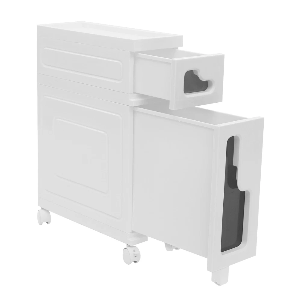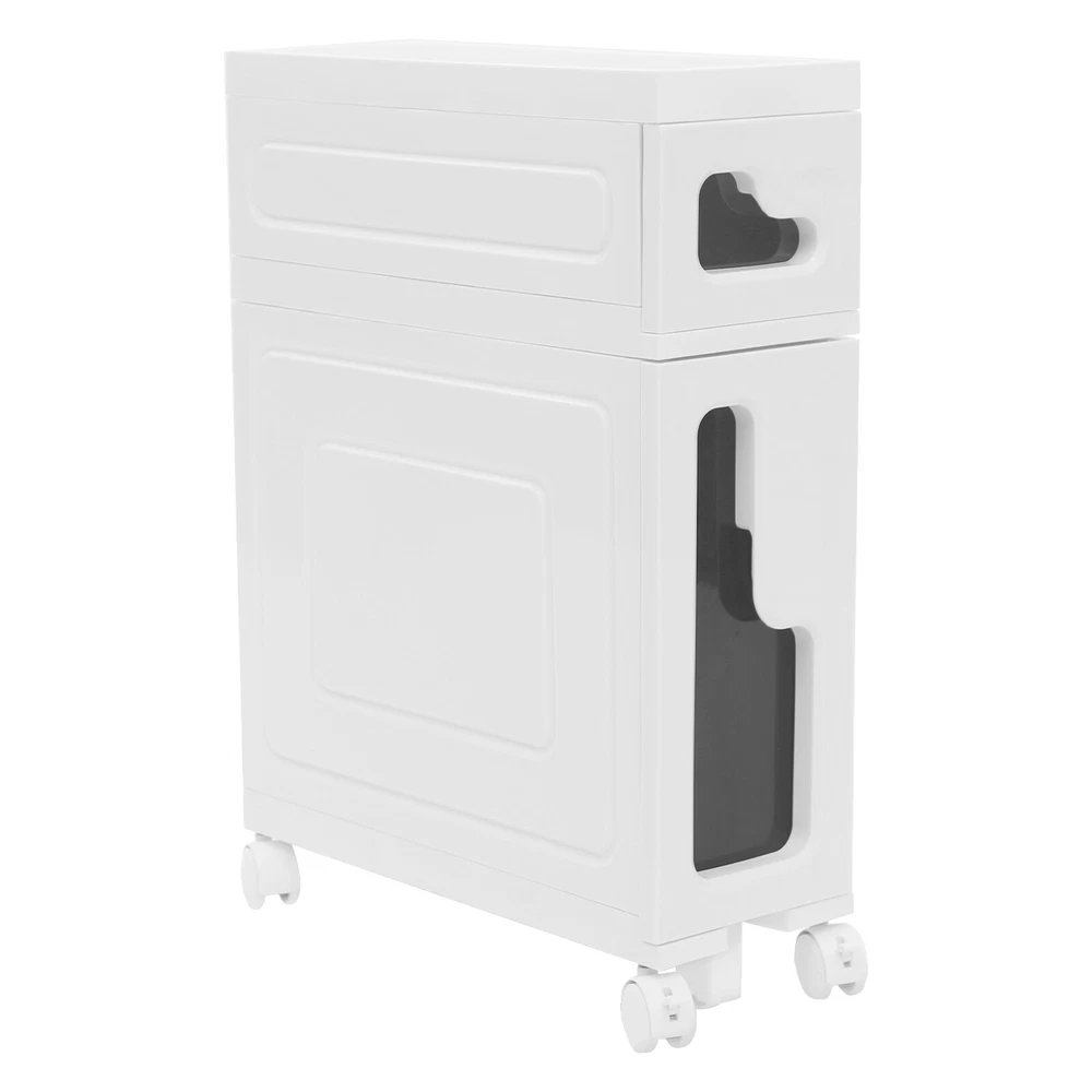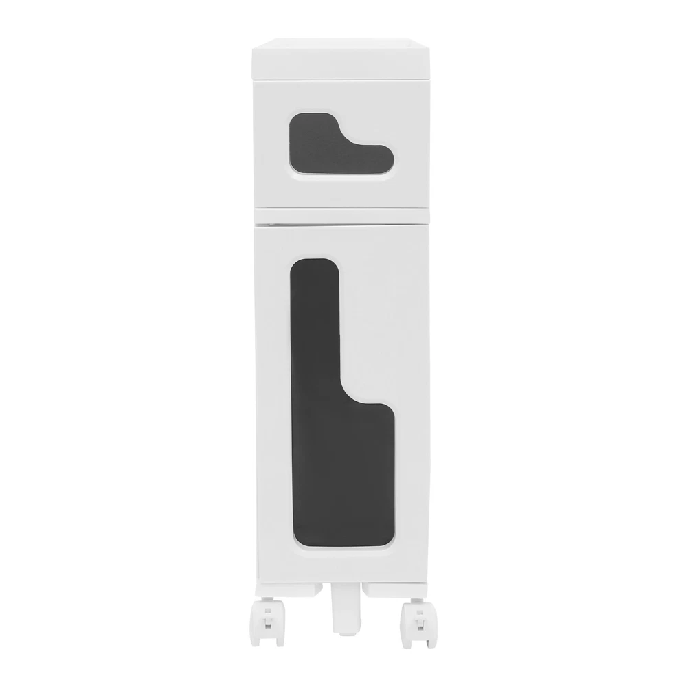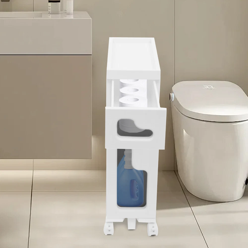 Bathroom Storage Floor Cabinet Slim Bathroom Storage Cabinet,Storage Cabinet Storage Cabinet, Slim Bathroom Storage Cabinet, Bathroom Storage Floor Cabinet Description Made of high-strength material, this 2-tier storage cabinet is sturdy and durable, easy to organize various daily necessities, and the universal wheels design makes it more convenient to move. It not only saves space, but also adds a sense of neatness and beauty to the interior environment, which is an indispensable helper for you to create an ideal home. Key Features Last for Years: Made of excellent PP, it is impact resistant, abrasion resistant, fade resistant, with a strong load-bearing capacity and high durability, not easy to deform, to ensure your long-term use. User Friendly: With 4 universal wheels (2 with brakes), it is convenient for you to move, fix, and adjust the position at any time, which can be used as a rolling trolley, bathroom cart, kitchen cart, dining trolley, service trolley, storage rack, tool trolley and so on. Stable Support: The stable frame and sturdy material make it easy to hold up to 66.14 lbs, allowing you to rest assured that you can place toiletries, towels, crafts, plants, and tools (all not included) on it. Humanized Design: The sealed design effectively waterproofs and better protects the items from getting wet, making it suitable for bathrooms, kitchens, bedrooms, and so on. Space Saving: With a compact design ( 15.7*6.3*22 inches), it is suitable for placing in narrow spaces, such as kitchen corners, bathrooms, and so on. Effortless Cleaning: Thanks to its smooth surface and simple structure, you can wipe it clean with a wet rag(not included). Easy to Assemble: Simple structure, complete installation accessories and detailed installation instructions can help you complete the installation quickly and put it into use. Modern Style: The simple appearance design is suitable for a variety of home styles and enhances the overall aesthetics of the space. Customer Service: We aim to provide quality products and services. If you have any problems, please feel free to contact us. We will reply and solve the problem for you as soon as possible. Details Thoughtful Slot: It can effectively prevent the drawer from falling off and ensure more stable placement of items. Enlarged Drawer Handle: The enlarged L-shaped drawer handle makes it easier to access items. Increased Edges: They prevent items placed on the top from falling, giving you peace of mind when using it. Application It can be used as a bathroom cabinet to store toiletries, cosmetics, towels, etc. It can also be used as a kitchen storage cabinet to store food, spices, cutlery, etc. It can also be used as a bedroom nightstand to store skincare products, watches, jewelry, etc., as well as as a living room sideboard to store books, remotes, toys, pet supplies, etc. Specification Mount Type: Floorstanding Assembly Required: Yes Number of Tiers: 2 Number of Universal Wheels: 4 (2 with Brakes) Number of Auxiliary Wheels: 3 Material: PP Color: White, Black Shape: Rectangular Overall Load-capacity: 30kg/66.14lbs Product Size: 40*16*56cm/15.7*6.3*22in Package Size: 42.5*42*17.5cm/16.73*16.54*6.89in Gross Weight: 3.8kg/8.38lbs Net Weight: 3.61kg/7.96lbs Package Included 1* 2-tier Storage Cabinet 4* Universal Wheels 1* Hammer 3* Auxiliary Wheels 1* English Installation Diagram Other Mounting Accessories Notes Please check the style and size before purchasing. Please follow the diagram for installation. Please do not place items that exceed the maximum load capacity of the product. Please note that toiletries, cosmetics, towels, and other items are not included in this product. Please allow the slight color difference caused by the shooting light and 1-3cm error due to manual measurement and make sure you do not mind before ordering. Payment Delivery details Terms of sales About us Contact us Payment We accept ebay payment 。 Fees such as import duties, taxes are not included in the item price or shipping costs. These charges are the buyer's responsibility. Delivery details Shipping: 2-9 working days to: USA Terms of sales We maintain high standards of excellence and strive for hundred percent customer satisfaction. Feedback is very important to us. We hope that you contact us immediately before you give neutral or negative feedback, so that we can address your concerns. It is impossible to address issues if we do not know about them! About us Your satis faction is our ultimate goal. We work hard to earn your trust and future business. Our certified technicians have tested each item before shipping. The unit comes with 1 year limited warranty on all manufacturing defects. a) If you receive a defective item, you may return it or ask for a discount. Please contact us within 14 days after you receive the package. b) What you returned must be intact and in its original packaging as re? u. Customer is responsible for shipping costs of the returned item. c) We will cover the cost of shipping back t with the shipping rate indicated in the registration page. We will send you a new unit or refund the full payment you paid. Thank you. Contact us Business Hour Business Hour: Monday To Friday: 8:30 AM to 5:00 PM (Beijing China time) Due to time zones, our reply to your questions may not be immediately. But within above working time, we will reply your email within 24 hours. If it's non-workdays, please kindly be patient and wait till Monday. Please contact us with ebay message. Please feel free to contact us if you have any questions. Monday To Friday: 8:30 AM to 5:00 PM (Beijing China time) Due to time zones, our reply to your questions may not be immediately. But within above working time, we will reply your email within 24 hours. If it's non-workdays, please kindly be patient and wait till Monday. Please contact us with ebay message. Please feel free to contact us if you have any questions.