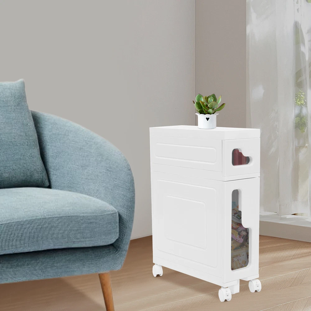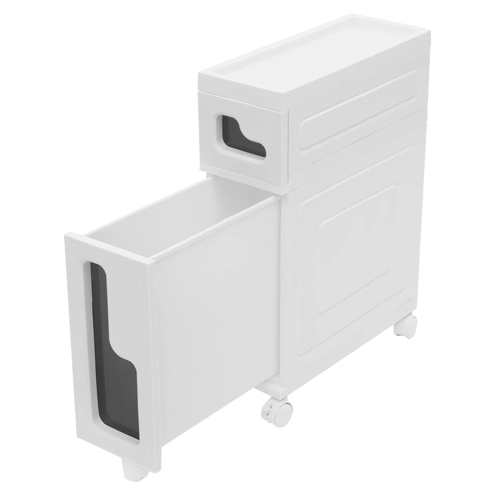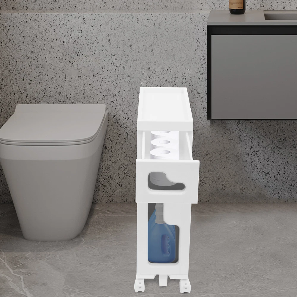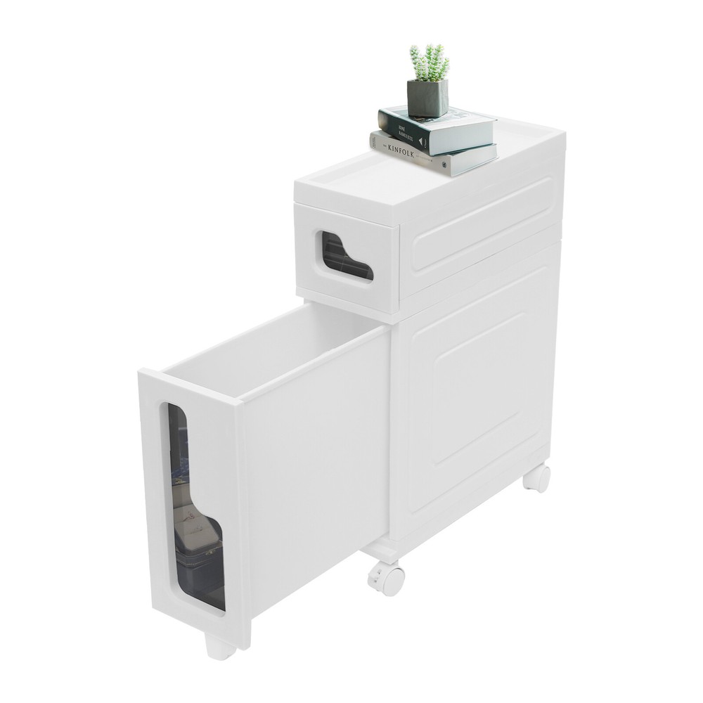 Bathroom Storage Floor Cabinet Slim Bathroom Storage Cabinet,Storage Cabinet Storage Cabinet, Slim Bathroom Storage Cabinet, Bathroom Storage Floor Cabinet Description Made of high-strength material, this 2-tier storage cabinet is sturdy and durable, easy to organize various daily necessities, and the universal wheels design makes it more convenient to move. It not only saves space, but also adds a sense of neatness and beauty to the interior environment, which is an indispensable helper for you to create an ideal home. Key Features Last for Years: Made of excellent PP, it is impact resistant, abrasion resistant, fade resistant, with a strong load-bearing capacity and high durability, not easy to deform, to ensure your long-term use. User Friendly: With 4 universal wheels (2 with brakes), it is convenient for you to move, fix, and adjust the position at any time, which can be used as a rolling trolley, bathroom cart, kitchen cart, dining trolley, service trolley, storage rack, tool trolley and so on. Stable Support: The stable frame and sturdy material make it easy to hold up to 66.14 lbs, allowing you to rest assured that you can place toiletries, towels, crafts, plants, and tools (all not included) on it. Humanized Design: The sealed design effectively waterproofs and better protects the items from getting wet, making it suitable for bathrooms, kitchens, bedrooms, and so on. Space Saving: With a compact design ( 15.7*6.3*22 inches), it is suitable for placing in narrow spaces, such as kitchen corners, bathrooms, and so on. Effortless Cleaning: Thanks to its smooth surface and simple structure, you can wipe it clean with a wet rag(not included). Easy to Assemble: Simple structure, complete installation accessories and detailed installation instructions can help you complete the installation quickly and put it into use. Modern Style: The simple appearance design is suitable for a variety of home styles and enhances the overall aesthetics of the space. Customer Service: We aim to provide quality products and services. If you have any problems, please feel free to contact us. We will reply and solve the problem for you as soon as possible. Details Thoughtful Slot: It can effectively prevent the drawer from falling off and ensure more stable placement of items. Enlarged Drawer Handle: The enlarged L-shaped drawer handle makes it easier to access items. Increased Edges: They prevent items placed on the top from falling, giving you peace of mind when using it. Application It can be used as a bathroom cabinet to store toiletries, cosmetics, towels, etc. It can also be used as a kitchen storage cabinet to store food, spices, cutlery, etc. It can also be used as a bedroom nightstand to store skincare products, watches, jewelry, etc., as well as as a living room sideboard to store books, remotes, toys, pet supplies, etc. Specification Mount Type: Floorstanding Assembly Required: Yes Number of Tiers: 2 Number of Universal Wheels: 4 (2 with Brakes) Number of Auxiliary Wheels: 3 Material: PP Color: White, Black Shape: Rectangular Overall Load-capacity: 30kg/66.14lbs Product Size: 40*16*56cm/15.7*6.3*22in Package Size: 42.5*42*17.5cm/16.73*16.54*6.89in Gross Weight: 3.8kg/8.38lbs Net Weight: 3.61kg/7.96lbs Package Included 1* 2-tier Storage Cabinet 4* Universal Wheels 1* Hammer 3* Auxiliary Wheels 1* English Installation Diagram Other Mounting Accessories Notes Please check the style and size before purchasing. Please follow the diagram for installation. Please do not place items that exceed the maximum load capacity of the product. Please note that toiletries, cosmetics, towels, and other items are not included in this product. Please allow the slight color difference caused by the shooting light and 1-3cm error due to manual measurement and make sure you do not mind before ordering. Payment Delivery details Terms of sales About us Contact us Payment We accept ebay payment 。 Fees such as import duties, taxes are not included in the item price or shipping costs. These charges are the buyer's responsibility. Delivery details Shipping: 2-9 working days to: USA Terms of sales We maintain high standards of excellence and strive for hundred percent customer satisfaction. Feedback is very important to us. We hope that you contact us immediately before you give neutral or negative feedback, so that we can address your concerns. It is impossible to address issues if we do not know about them! About us Your satis faction is our ultimate goal. We work hard to earn your trust and future business. Our certified technicians have tested each item before shipping. The unit comes with 1 year limited warranty on all manufacturing defects. a) If you receive a defective item, you may return it or ask for a discount. Please contact us within 14 days after you receive the package. b) What you returned must be intact and in its original packaging as re? u. Customer is responsible for shipping costs of the returned item. c) We will cover the cost of shipping back t with the shipping rate indicated in the registration page. We will send you a new unit or refund the full payment you paid. Thank you. Contact us Business Hour Business Hour: Monday To Friday: 8:30 AM to 5:00 PM (Beijing China time) Due to time zones, our reply to your questions may not be immediately. But within above working time, we will reply your email within 24 hours. If it's non-workdays, please kindly be patient and wait till Monday. Please contact us with ebay message. Please feel free to contact us if you have any questions. Monday To Friday: 8:30 AM to 5:00 PM (Beijing China time) Due to time zones, our reply to your questions may not be immediately. But within above working time, we will reply your email within 24 hours. If it's non-workdays, please kindly be patient and wait till Monday. Please contact us with ebay message. Please feel free to contact us if you have any questions.