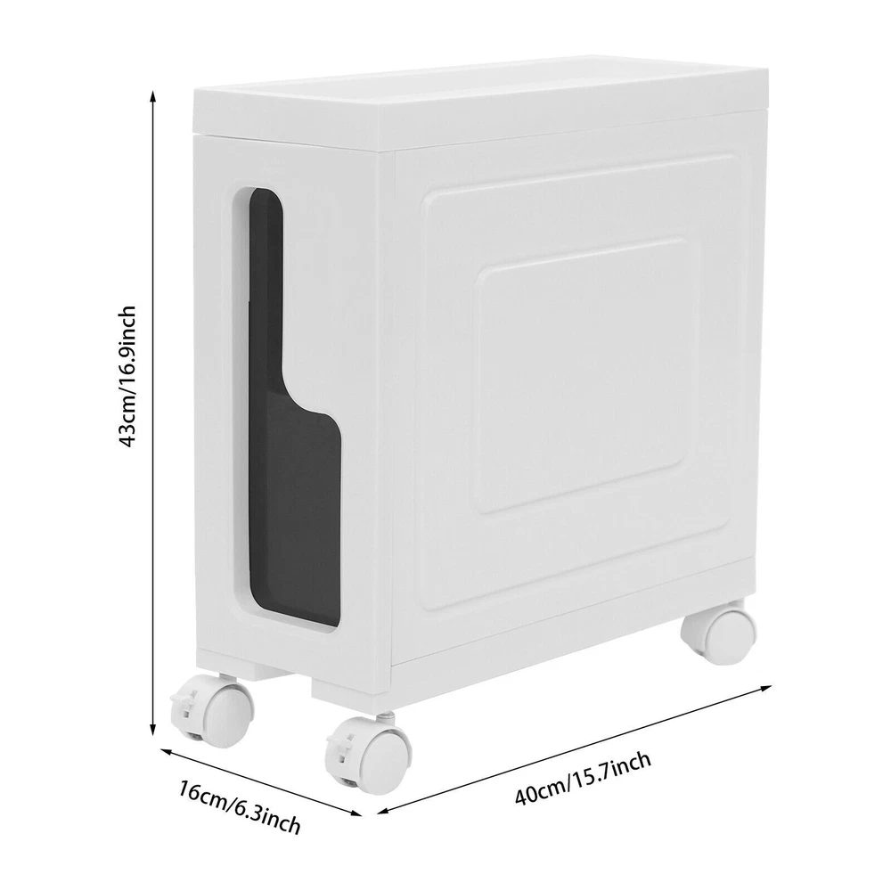 Storage Cabinet, Slim Bathroom Storage Cabinet, Bathroom Storage Floor Cabinet Storage Cabinet, Slim Bathroom Storage Cabinet, Bathroom Storage Floor Cabinet Description Made of high-strength material, this storage cabinet is sturdy and durable, easy to organize various daily necessities, and the universal wheels design makes it more convenient to move. It not only saves space, but also adds a sense of neatness and beauty to the interior environment, which is an indispensable helper for you to create an ideal home. Key Features Last for Years: Made of excellent PP, it is impact resistant, abrasion resistant, fade resistant, with a strong load-bearing capacity and high durability, not easy to deform, to ensure your long-term use. User Friendly: With 4 universal wheels (2 with brakes), it is convenient for you to move, fix, and adjust the position at any time, which can be used as a rolling trolley, bathroom cart, kitchen cart, dining trolley, service trolley, storage rack, tool trolley and so on. Stable Support: The stable frame and sturdy material make it easy to hold up to 66.14 lbs, allowing you to rest assured that you can place toiletries, towels, crafts, plants, and tools (all not included) on it. Humanized Design: The sealed design effectively waterproofs and better protects the items from getting wet, making it suitable for bathrooms, kitchens, bedrooms, and so on. Space Saving: With a compact design (15.7*6.3*16.9 inches), it is suitable for placing in narrow spaces, such as kitchen corners, bathrooms, and so on. Effortless Cleaning: Thanks to its smooth surface and simple structure, you can wipe it clean with a wet rag(not included). Easy to Assemble: Simple structure, complete installation accessories and detailed installation instructions can help you complete the installation quickly and put it into use. Modern Style: The simple appearance design is suitable for a variety of home styles and enhances the overall aesthetics of the space. Customer Service: We aim to provide quality products and services. If you have any problems, please feel free to contact us. We will reply and solve the problem for you as soon as possible. Details Thoughtful Slot: It can effectively prevent the drawer from falling off and ensure more stable placement of items. Enlarged Drawer Handle: The enlarged L-shaped drawer handle makes it easier to access items. Increased Edges: They prevent items placed on the top from falling, giving you peace of mind when using it. Application It can be used as a bathroom cabinet to store toiletries, cosmetics, towels, etc. It can also be used as a kitchen storage cabinet to store food, spices, cutlery, etc. It can also be used as a bedroom nightstand to store skincare products, watches, jewelry, etc., as well as as a living room sideboard to store books, remotes, toys, pet supplies, etc. Specification Mount Type: Floorstanding Assembly Required: Yes Number of Tiers: 1 Number of Universal Wheels: 4 (2 with Brakes) Material: PP Color: White, Black Shape: Rectangular Overall Load-capacity: 30kg/66.14lbs Product Size: 40*16*43cm/15.7*6.3*16.9in Package Size: 41.5*39*17.5cm/16.34*15.35*6.89in Gross weight: 2.4kg/5.29lbs Net weight: 2.28kg/5.03lbs Package Included 1* Storage Cabinet 4* Universal Wheels 1* English Installation Diagram Notes Please check the style and size before purchasing. Please follow the diagram for installation. Please do not place items that exceed the maximum load capacity of the product. Please note that toiletries, cosmetics, towels, and other items are not included in this product. Please allow the slight color difference caused by the shooting light and 1-3cm error due to manual measurement and make sure you do not mind before ordering. Payment Delivery details Terms of sales About us Contact us Payment We accept ebay payment 。 Fees such as import duties, taxes are not included in the item price or shipping costs. These charges are the buyer's responsibility. Delivery details Shipping: 2-9 working days to: USA Terms of sales We maintain high standards of excellence and strive for hundred percent customer satisfaction. Feedback is very important to us. We hope that you contact us immediately before you give neutral or negative feedback, so that we can address your concerns. It is impossible to address issues if we do not know about them! About us Your satis faction is our ultimate goal. We work hard to earn your trust and future business. Our certified technicians have tested each item before shipping. The unit comes with 1 year limited warranty on all manufacturing defects. a) If you receive a defective item, you may return it or ask for a discount. Please contact us within 14 days after you receive the package. b) What you returned must be intact and in its original packaging as re? u. Customer is responsible for shipping costs of the returned item. c) We will cover the cost of shipping back t with the shipping rate indicated in the registration page. We will send you a new unit or refund the full payment you paid. Thank you. Contact us Business Hour Business Hour: Monday To Friday: 8:30 AM to 5:00 PM (Beijing China time) Due to time zones, our reply to your questions may not be immediately. But within above working time, we will reply your email within 24 hours. If it's non-workdays, please kindly be patient and wait till Monday. Please contact us with ebay message. Please feel free to contact us if you have any questions. Monday To Friday: 8:30 AM to 5:00 PM (Beijing China time) Due to time zones, our reply to your questions may not be immediately. But within above working time, we will reply your email within 24 hours. If it's non-workdays, please kindly be patient and wait till Monday. Please contact us with ebay message. Please feel free to contact us if you have any questions. Feature! Stable performance, durable Mount Type Floorstanding Number of Tiers 1 Number of Universal Wheels 4 (2 with Brakes) Overall Load-capacity 30kg/66.14lbs Pr