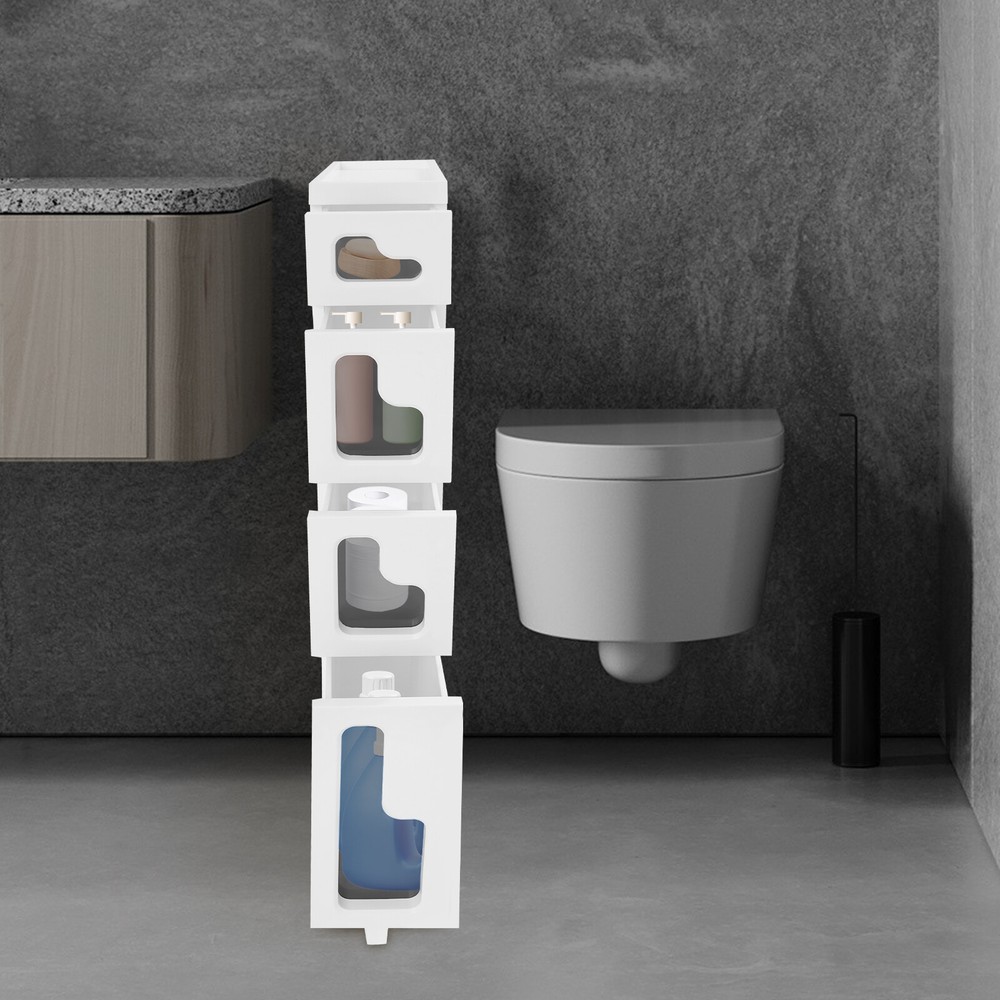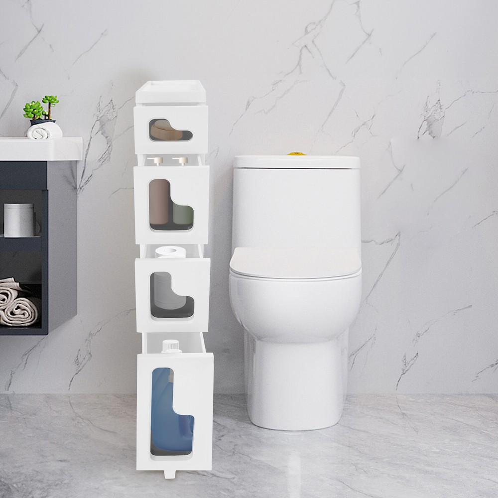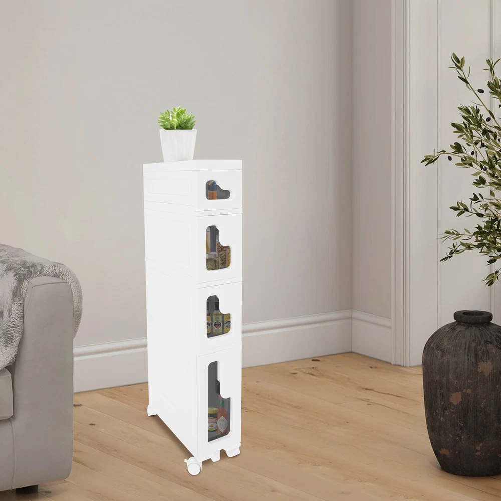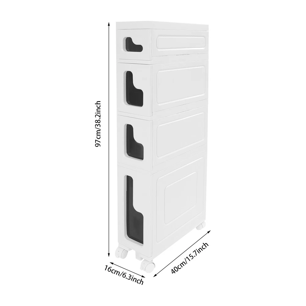 Bathroom Storage Floor Cabinet, Slim Bathroom Storage Cabinet,Storage Cabinet Storage Cabinet, Slim Bathroom Storage Cabinet, Bathroom Storage Floor Cabinet Description Made of high-strength material, this 4-tier storage cabinet is sturdy and durable, easy to organize various daily necessities, and the universal wheels design makes it more convenient to move. It not only saves space, but also adds a sense of neatness and beauty to the interior environment, which is an indispensable helper for you to create an ideal home. Key Features Last for Years: Made of excellent PP, it is impact resistant, abrasion resistant, fade resistant, with a strong load-bearing capacity and high durability, not easy to deform, to ensure your long-term use. User Friendly: With 4 universal wheels (2 with brakes), it is convenient for you to move, fix, and adjust the position at any time, which can be used as a rolling trolley, bathroom cart, kitchen cart, dining trolley, service trolley, storage rack, tool trolley and so on. Stable Support: The stable frame and sturdy material make it easy to hold up to 66.14 lbs, allowing you to rest assured that you can place toiletries, towels, crafts, plants, and tools (all not included) on it. Humanized Design: The sealed design effectively waterproofs and better protects the items from getting wet, making it suitable for bathrooms, kitchens, bedrooms, and so on. Space Saving: With a compact design (15.7*6.3* 38.2 inches), it is suitable for placing in narrow spaces, such as kitchen corners, bathrooms, and so on. Effortless Cleaning: Thanks to its smooth surface and simple structure, you can wipe it clean with a wet rag(not included). Easy to Assemble: Simple structure, complete installation accessories and detailed installation instructions can help you complete the installation quickly and put it into use. Modern Style: The simple appearance design is suitable for a variety of home styles and enhances the overall aesthetics of the space. Customer Service: We aim to provide quality products and services. If you have any problems, please feel free to contact us. We will reply and solve the problem for you as soon as possible. Details Thoughtful Slot: It can effectively prevent the drawer from falling off and ensure more stable placement of items. Enlarged Drawer Handle: The enlarged L-shaped drawer handle makes it easier to access items. Increased Edges: They prevent items placed on the top from falling, giving you peace of mind when using it. Application It can be used as a bathroom cabinet to store toiletries, cosmetics, towels, etc. It can also be used as a kitchen storage cabinet to store food, spices, cutlery, etc. It can also be used as a bedroom nightstand to store skincare products, watches, jewelry, etc., as well as as a living room sideboard to store books, remotes, toys, pet supplies, etc. Specification Mount Type: Floorstanding Assembly Required: Yes Number of Tiers: 4 Number of Universal Wheels: 4 (2 with Brakes) Material: PP Color: White, Black Shape: Rectangular Overall Load-capacity: 30kg/66.14lbs Product Size: 40*16*97cm/15.7*6.3*38.2in Package Size: 41.5*39*33.5cm/16.34*15.35*13.19in Gross Weight : 5.9kg/13.01lbs Net Weight: 5.61kg/12.37lbs Package Included 1* 4-tier Storage Cabinet 4* Universal Wheels 1* Hammer 3* Auxiliary Wheels 1* English Installation Diagram Other Mounting Accessories Notes Please check the style and size before purchasing. Please follow the diagram for installation. Please do not place items that exceed the maximum load capacity of the product. Please note that toiletries, cosmetics, towels, and other items are not included in this product. Please allow the slight color difference caused by the shooting light and 1-3cm error due to manual measurement and make sure you do not mind before ordering. Payment Delivery details Terms of sales About us Contact us Payment We accept ebay payment 。 Fees such as import duties, taxes are not included in the item price or shipping costs. These charges are the buyer's responsibility. Delivery details Shipping: 2-9 working days to: USA Terms of sales We maintain high standards of excellence and strive for hundred percent customer satisfaction. Feedback is very important to us. We hope that you contact us immediately before you give neutral or negative feedback, so that we can address your concerns. It is impossible to address issues if we do not know about them! About us Your satis faction is our ultimate goal. We work hard to earn your trust and future business. Our certified technicians have tested each item before shipping. The unit comes with 1 year limited warranty on all manufacturing defects. a) If you receive a defective item, you may return it or ask for a discount. Please contact us within 14 days after you receive the package. b) What you returned must be intact and in its original packaging as re? u. Customer is responsible for shipping costs of the returned item. c) We will cover the cost of shipping back t with the shipping rate indicated in the registration page. We will send you a new unit or refund the full payment you paid. Thank you. Contact us Business Hour Business Hour: Monday To Friday: 8:30 AM to 5:00 PM (Beijing China time) Due to time zones, our reply to your questions may not be immediately. But within above working time, we will reply your email within 24 hours. If it's non-workdays, please kindly be patient and wait till Monday. Please contact us with ebay message. Please feel free to contact us if you have any questions. Monday To Friday: 8:30 AM to 5:00 PM (Beijing China time) Due to time zones, our reply to your questions may not be immediately. But within above working time, we will reply your email within 24 hours. If it's non-workdays, please kindly be patient and wait till Monday. Please contact us with ebay message. Please feel free to contact us if you have any questions.