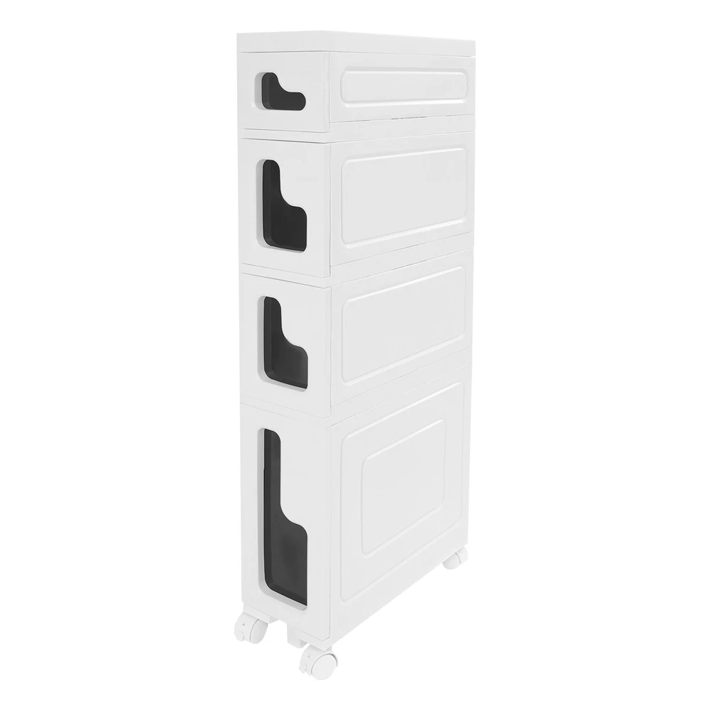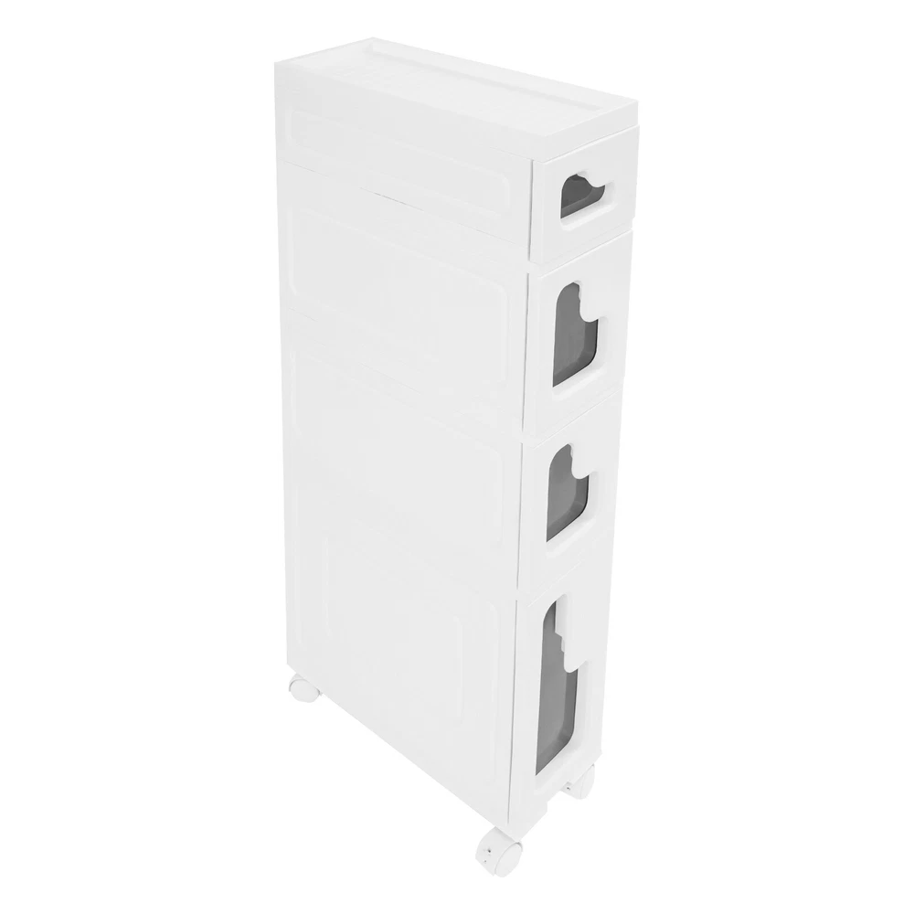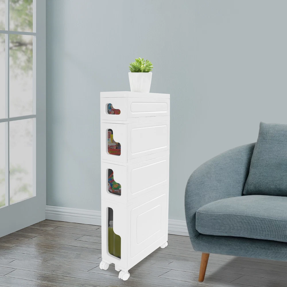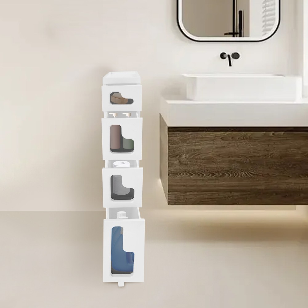 Bathroom Storage Floor Cabinet, Slim Bathroom Storage Cabinet,Storage Cabinet Storage Cabinet, Slim Bathroom Storage Cabinet, Bathroom Storage Floor Cabinet Description Made of high-strength material, this 4-tier storage cabinet is sturdy and durable, easy to organize various daily necessities, and the universal wheels design makes it more convenient to move. It not only saves space, but also adds a sense of neatness and beauty to the interior environment, which is an indispensable helper for you to create an ideal home. Key Features Last for Years: Made of excellent PP, it is impact resistant, abrasion resistant, fade resistant, with a strong load-bearing capacity and high durability, not easy to deform, to ensure your long-term use. User Friendly: With 4 universal wheels (2 with brakes), it is convenient for you to move, fix, and adjust the position at any time, which can be used as a rolling trolley, bathroom cart, kitchen cart, dining trolley, service trolley, storage rack, tool trolley and so on. Stable Support: The stable frame and sturdy material make it easy to hold up to 66.14 lbs, allowing you to rest assured that you can place toiletries, towels, crafts, plants, and tools (all not included) on it. Humanized Design: The sealed design effectively waterproofs and better protects the items from getting wet, making it suitable for bathrooms, kitchens, bedrooms, and so on. Space Saving: With a compact design (15.7*6.3* 38.2 inches), it is suitable for placing in narrow spaces, such as kitchen corners, bathrooms, and so on. Effortless Cleaning: Thanks to its smooth surface and simple structure, you can wipe it clean with a wet rag(not included). Easy to Assemble: Simple structure, complete installation accessories and detailed installation instructions can help you complete the installation quickly and put it into use. Modern Style: The simple appearance design is suitable for a variety of home styles and enhances the overall aesthetics of the space. Customer Service: We aim to provide quality products and services. If you have any problems, please feel free to contact us. We will reply and solve the problem for you as soon as possible. Details Thoughtful Slot: It can effectively prevent the drawer from falling off and ensure more stable placement of items. Enlarged Drawer Handle: The enlarged L-shaped drawer handle makes it easier to access items. Increased Edges: They prevent items placed on the top from falling, giving you peace of mind when using it. Application It can be used as a bathroom cabinet to store toiletries, cosmetics, towels, etc. It can also be used as a kitchen storage cabinet to store food, spices, cutlery, etc. It can also be used as a bedroom nightstand to store skincare products, watches, jewelry, etc., as well as as a living room sideboard to store books, remotes, toys, pet supplies, etc. Specification Mount Type: Floorstanding Assembly Required: Yes Number of Tiers: 4 Number of Universal Wheels: 4 (2 with Brakes) Material: PP Color: White, Black Shape: Rectangular Overall Load-capacity: 30kg/66.14lbs Product Size: 40*16*97cm/15.7*6.3*38.2in Package Size: 41.5*39*33.5cm/16.34*15.35*13.19in Gross Weight : 5.9kg/13.01lbs Net Weight: 5.61kg/12.37lbs Package Included 1* 4-tier Storage Cabinet 4* Universal Wheels 1* Hammer 3* Auxiliary Wheels 1* English Installation Diagram Other Mounting Accessories Notes Please check the style and size before purchasing. Please follow the diagram for installation. Please do not place items that exceed the maximum load capacity of the product. Please note that toiletries, cosmetics, towels, and other items are not included in this product. Please allow the slight color difference caused by the shooting light and 1-3cm error due to manual measurement and make sure you do not mind before ordering. Payment Delivery details Terms of sales About us Contact us Payment We accept ebay payment 。 Fees such as import duties, taxes are not included in the item price or shipping costs. These charges are the buyer's responsibility. Delivery details Shipping: 2-9 working days to: USA Terms of sales We maintain high standards of excellence and strive for hundred percent customer satisfaction. Feedback is very important to us. We hope that you contact us immediately before you give neutral or negative feedback, so that we can address your concerns. It is impossible to address issues if we do not know about them! About us Your satis faction is our ultimate goal. We work hard to earn your trust and future business. Our certified technicians have tested each item before shipping. The unit comes with 1 year limited warranty on all manufacturing defects. a) If you receive a defective item, you may return it or ask for a discount. Please contact us within 14 days after you receive the package. b) What you returned must be intact and in its original packaging as re? u. Customer is responsible for shipping costs of the returned item. c) We will cover the cost of shipping back t with the shipping rate indicated in the registration page. We will send you a new unit or refund the full payment you paid. Thank you. Contact us Business Hour Business Hour: Monday To Friday: 8:30 AM to 5:00 PM (Beijing China time) Due to time zones, our reply to your questions may not be immediately. But within above working time, we will reply your email within 24 hours. If it's non-workdays, please kindly be patient and wait till Monday. Please contact us with ebay message. Please feel free to contact us if you have any questions. Monday To Friday: 8:30 AM to 5:00 PM (Beijing China time) Due to time zones, our reply to your questions may not be immediately. But within above working time, we will reply your email within 24 hours. If it's non-workdays, please kindly be patient and wait till Monday. Please contact us with ebay message. Please feel free to contact us if you have any questions.