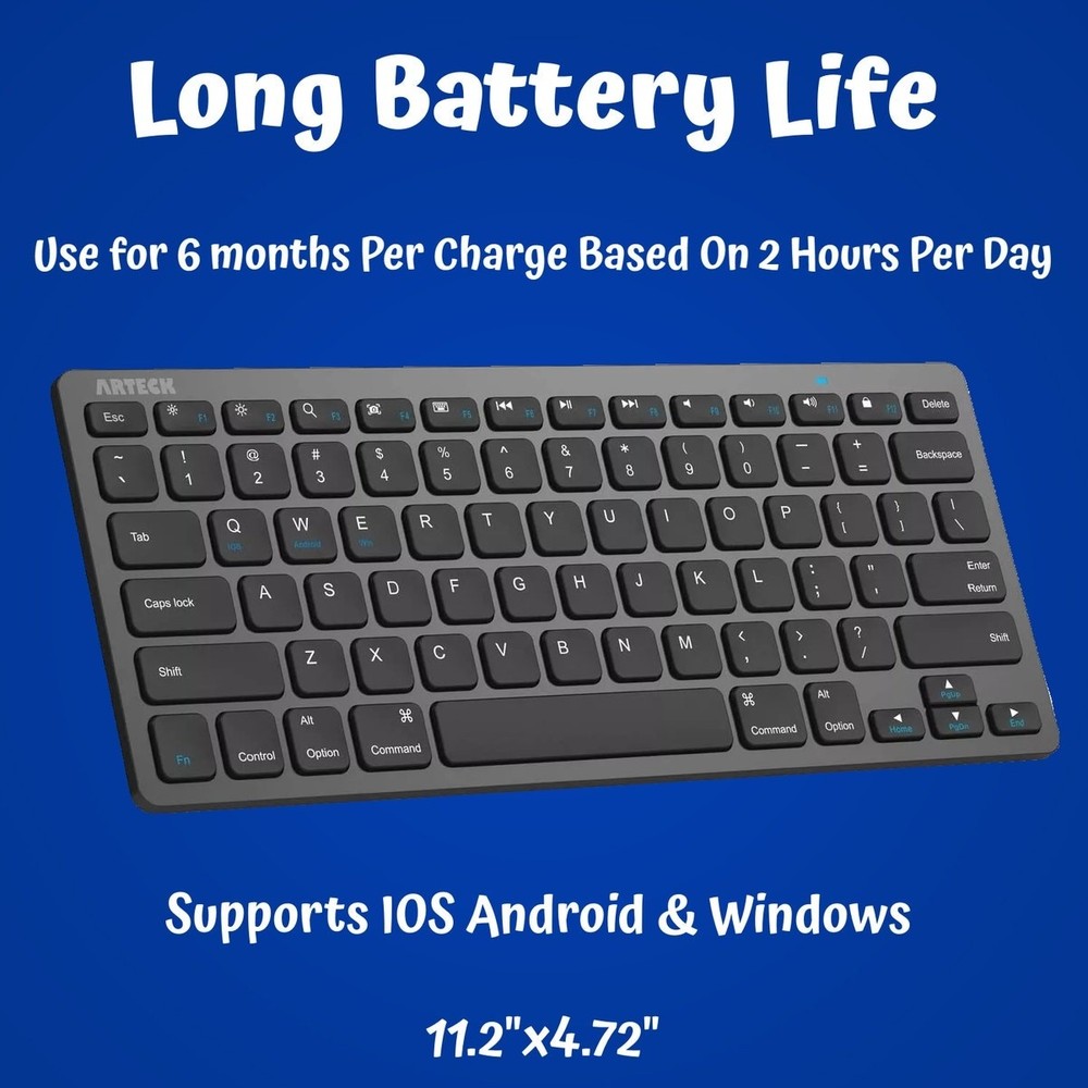 New Black Bluetooth Universal Slim Keyboard Supports 3 Systems Lasting Charge. Arteck HB098. Please see all photos for more details. Will ship fast and with care!