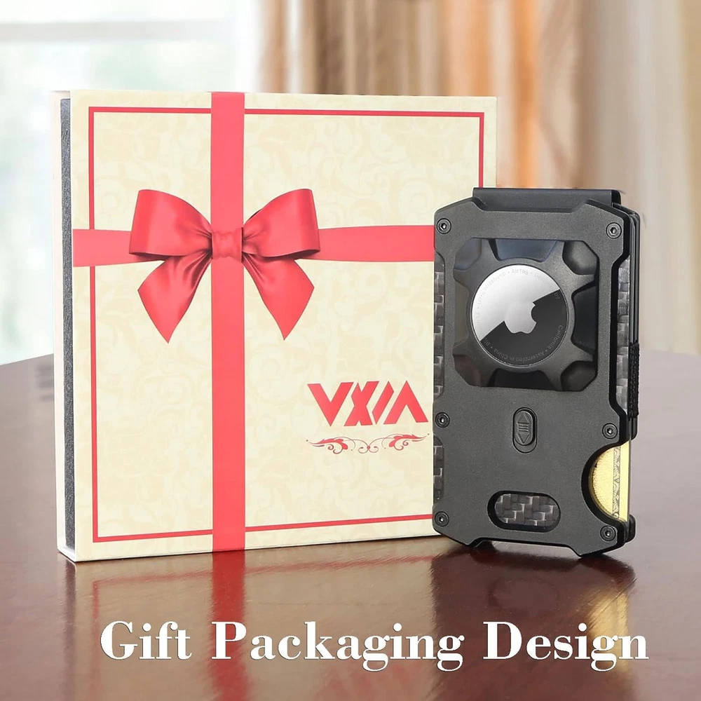 WXM Wallet for Men with AirTag Holder Credit slim Front Airtag Black Product Details Product Dimensions: 4.4 x 2.16 x 3.84 inches Item Weight: 4.2 ounces Department: Womensunisex Manufacturer: WXM Item model number: Airtag Wallet Brand: WXM Color: Airtag Wallet Black Compatible Devices: airtag Form Factor: Cover Shell Type: Hard [Airtag Wallet]: This Mens Wallet is designed to accommodate an Airtag, allowing you to locate it with your iPhone via the Find My app. (Please note: Airtag is NOT included). [Spacious & Accessible]: Securely holds up to 15 credit/debit cards. The external notch ensures easy card retrieval. [Advanced RFID Protection]: Our Wallet for Men boasts a robust metal body, shielding your cards from potent RFID Chip Readers. [Durable & Lightweight]: Crafted with military-grade Real carbon fiber and framed in Aluminum alloy, the WXM Tactical Wallet is not only lightweight but also resilient, outperforming traditional leather wallets. [Universal Appeal]: Both men and women admire its sleek design and metal construction. Perfect as a gift for the avid travelers in your life!