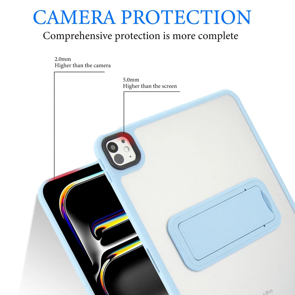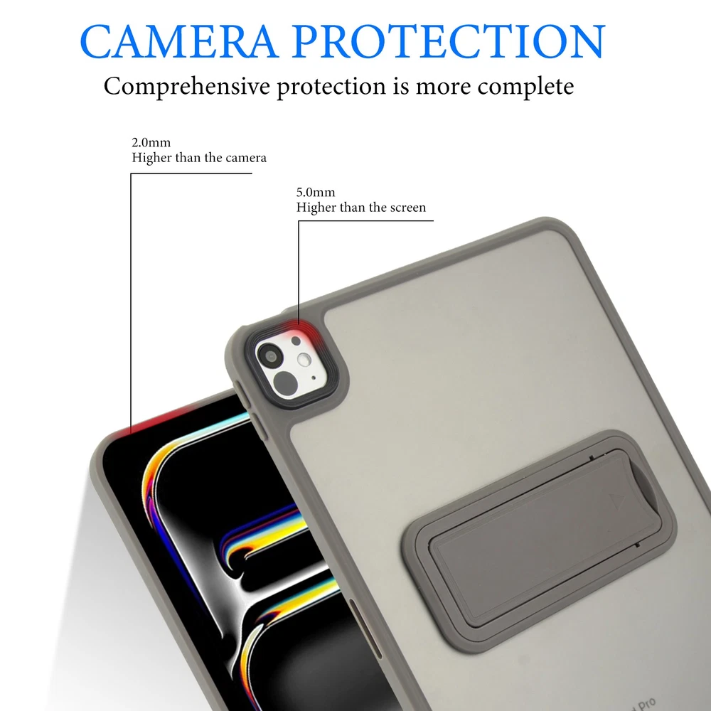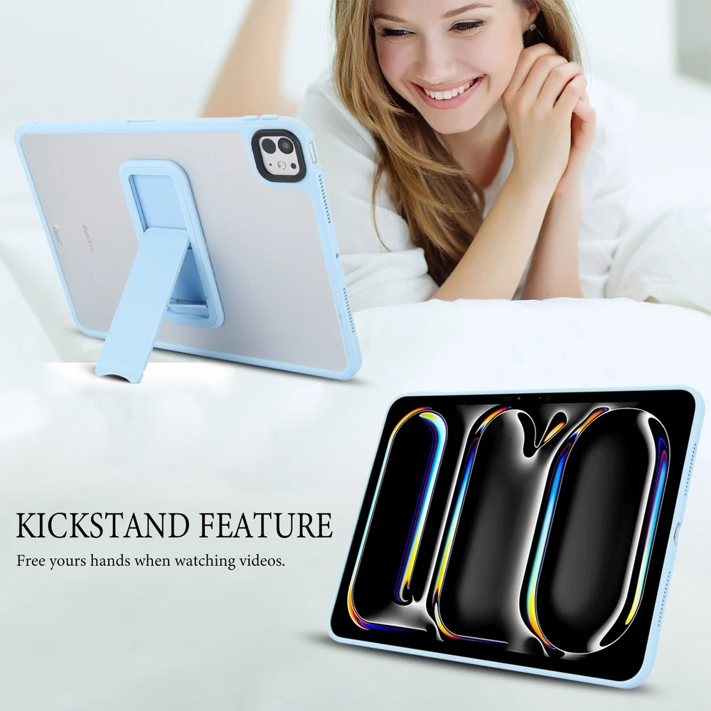 About This Case Cover: --100% Brand New and High Quality. --TPU bumper + PC back cover offer maximum protection from bumps and hard-hits for the back and sides of your tablet. --An innovative kickstand provides ultimate flexibility and convenience allowing you to watch videos and movies with enviable comfort. --Features raised li p edges to protect the display screen & camera from scratches. --The ultra-thin design keeps the original shape of the tablet, and the light weight does not increase the size. --Clear and soft skin reveals the natural beauty of your tablet design. --Precisely cut to preserve full use of volume buttons, charger, camera, microphone, headphone jack, and other ports or buttons, perfect fit. --Easy to install and remove. Package Included: 1 x case cover (iPad, Pencil, screen protector not included) Please check back bottom of your iPad to find one of these model numbers Choose Model Name iPad Model Number Screen Size(inch ) For iPad Mini (6th 8.3"2021) A2567/A2568/A2569 8.3 For iPad Mini (A17 Pro) 2024 A2995/A2996 8.3 For iPad 5th Gen (9.7"2017) A1822/A1823 9.7 For iPad 6th Gen (9.7"2018) A1893/A1954 9.7 For iPad 7th Gen (10.2" 2019) A2197/A2198/A2199/A2200 10.2 For iPad 8th Gen (10.2" 2020) A2430/A2429/A2428/A2270 10.2 For iPad 9th Gen (10.2" 2021) A2602/A2603/A2604/A2605 10.2 For iPad 10th Gen (10.9" 2022) A2696/A2757/A2777 10.9 For iPad 11" (A16) 2025 A3354 / A3355 / A3356 11 For iPad 5th Gen (9.7"2017) A1822/A1823 9.7 For iPad 6th Gen (9.7"2018) A1893/A1954 9.7 For iPad 7th Gen (10.2" 2019) A2197/A2198/A2199/A2200 10.2 For iPad 8th Gen (10.2" 2020) A2430/A2429/A2428/A2270 10.2 For iPad 9th Gen (10.2" 2021) A2602/A2603/A2604/A2605 10.2 For iPad 10th Gen (10.9" 2022) A2696/A2757/A2777 10.9 For iPad 11" (A16) 2025 A3354 / A3355 / A3356 11 For iPad Air 1(9.7"2013) A1474/A1475/A1476 9.7 For iPad Air 2(9.7"2014) A1566/A1567 9.7 For iPad Air 3(10.5"2019) A2154/A2152/A2153/A2123 10.5 For iPad Air 4(10.9"2020) A2316/A2324/A2325/A2072 10.9 For iPad Air 5(10.9"2022) A2588/A2589/A2591 10.9 For iPad Air 11 M2 (2024) A2902/A2903/A2904 11 For iPad Air 11 M3 (2025) A3266/A3267/A3270 11 For iPad Pro 9.7" (2016) A1673/A1674/A1675 9.7 For iPad Pro 10.5 (2017) A1701/A1709/A1852 10.5 For iPad Pro11 2018 A1979/A1980/A1934/A2013 11 For iPad Pro11 2020 A2228/A2068/A2230/A2231 11 For iPad Pro11 2021 A2301/A2377/A2459/A2460 11 For iPad P ro11 2022 A2759/A2435/A2761/A2762 11