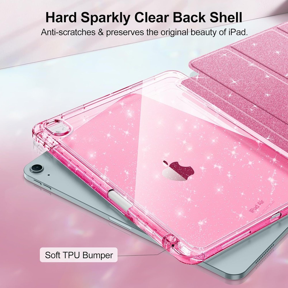 888 Other Apple Accessories Samsung Accessories Microsoft Surface Accessories Nintendo Switch Accessories Onn Accessories New Arrival TV Remote Accessories Passport & Card Holder Bose Accessories Keyboard Fujifilm Slim Case for iPad Air 11-inch M3 2025 2024/iPad Air 5th 4th Shiny Clear Cover Exclusively designed for iPad Air 11-inch (M3) 2025 (Model: A3266 / A3267 / A3270), iPad Air 11-inch (M2) 2024 (Model: A2902 / A2903 / A2904), iPad Air 5th Generation 10.9 Inch 2022 (Model: A2588 / A2589 / A2591), iPad Air 4th Generation 10.9 Inch 2020 (Model: A2072 / A2316 / A2324 / A2325). Not compatible with any other devices. Elevate your iPad's beauty with a stunning combination of glittering sparkly PU leather cover and a bling crystal-clear shiny back. Perfect for fashion-forward individuals, stylish women, cute kids, and anyone looking to showcase their unique style. Hardshell back cover with flexible TPU bumper protects your iPad from shocks, drops and impacts. Soft microfiber interior front prevents scratches, while the smooth PU leather resists dust and is easy to clean. Featuring embedded crystal glitter that never fades, ensuring your iPad always shines brightly. Seamlessly supports Apple Pencil Pro / Apple Pencil 2nd Gen magnetic and wireless charging when case is on. Built-in pencil holder securely carries and protects your apple pencil wherever you go. (Case only, other accessories not included!). Cover contains flip capability to transform the case into a viewing stand and keyboard stand with ease. With built-in magnets, automatically wakes or puts your device to sleep when the lid is opened and closed. Payment Delivery details Return Policy Contact us Feedback Payment Only PayPal Payments are accepted at this time; however, you may utilize the tools within PayPal to pay via your credit card. We reserve the right to file an unpaid bidder alert if the payment is not received within 7 days after the auction ended. PayPal transactions are free for buyers. Please let us know before you open a case if PayPal charges you extra fees upon purchase. Delivery details Paid items will be shipped within 1-2 business days. For US buyers, we will ship via USPS First Class mail which will take 2-5 business days for delivery. For other countries, we will ship via FedEx which will take 3-5 weeks for delivery. Shipping details will be sent to buyer through email on the same day that the item is shipped. Your item will usually arrive within the estimated timeframe. However, please note that there are certain circumstances that we unfortunately do not have control (i.e. weather condition, delay by postal office, etc.). Return Policy Contact us within 30 days of receiving the item. No questions asked - all returns accepted. Refund given as an exchange or money back. Return shipping should be paid by the buyer and $3 restocking fee might be charged per item returned. Contact us If you have any questions or concerns please feel free to call, message or email us. Our staff is happy to assist you in any way possible. Our office is open Monday-Friday 9am-5pm EST. CA residents: see the California Proposition 65 WARNING WARNING : Cancer and Reproductive Harm - www.P65Warnings.ca.gov Feedback Customer satisfaction is important to us and our feedback rating reflects this satisfaction. We strive to be as close as possible to 100% perfect "Five-Star." If anything did not meet your expectations, please provide us with the opportunity to fix our issues before you leave feedback. If satisfied with the purchase and our service, please take a minute to give us positive feedback and leave us 5 star feedback just as: Item as described Communication Shipping time Shipping and handing charges