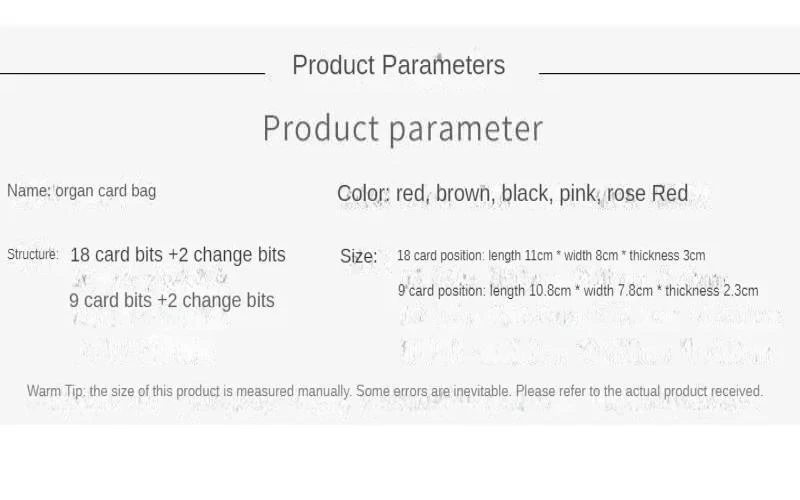 Free and fast shipping , shipping take up 1-7 Business Days 30 Day Return Accepted EASY PAYMENT via PayPal, Credit Card, PayPal Credit, Google Pay... Credit Card Holder Men's Leather Mini Modern Multicolor Thin Slim Wallet Gift Product features: -Leather clip is fashionable and versatile, soft and durable. -Made of high-quality materials, wear-resistant and durable -Multi card slot design for easy use -Fine and neat stitching, fashionable and beautiful -Small and unique, suitable for various occasions, and also perfect as a gift for lovers, girlfriends, daughters, mothers, etc. Inner materal; polyester fiber Color;Black, coffee, Rose Red Size; As shown in the figure REVIEWS The product came very well packaged. I'm very happy. thank you for everything. Seller strongly recommended. This is great! I definitely recommend! Product looks amazing Delivery was fast. Excellent seller, great communication. I advise everyone to buy it!