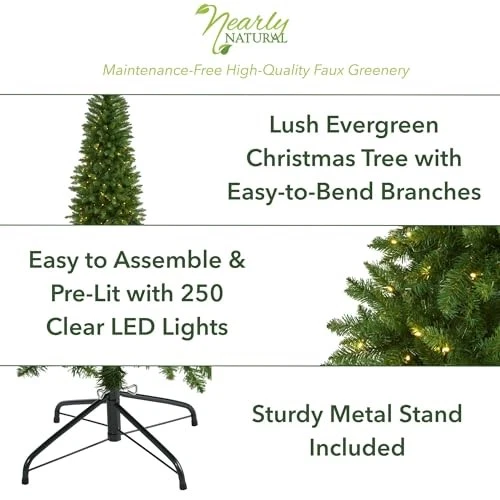 Return Policy Fast Delivery Trusted seller 6ft. Slim Green Mountain Pine Artificial Christmas Tree with 250 Clear LED Lights Product Description Nullify SEASONAL DÉCOR ACCENT: Incorporate seasonal evergreens this holiday with this artificial Christmas tree. Maintenance-free, it features a tight silhouette of mountain pine greenery with 743 bendable branches for showcg holiday ornaments and arrives pre-strung with 250 clear LED lights to eliminate tangles or knots. Standing 6’ tall and stabilized on a metal stand, this artificial Christmas tree is d to make holiday decorating stress-free, year after year CRAFTED OF QUALITY MATERIALS: Inspired by nature and crafted by horticulturists, this product comes stablized on a metal stand and is constructed from high-quality materials to ensure longevity year after year. Shop with confidence knowing our items "look so real, they're !" DIMENSIONS & SIZE: Product Dimensions: 27in. W x 27in. D x 72in. H ; Stand Dimensions: H: 7 In. W: 21 In.D: 21 In. ; Measurements are calculated from each furthest outstretched dimension EASY TO MAINTAIN: 743 bendable branches and stems are perfect for ornaments and allow for easy reshaping to reach the desired fullness and shape. No Watering or Trimming needed PRELIT: Pre-strung with 250 Clear LED Lights; 59in. Cord included. UL Certified Shipping Returns Payment Shipping Shipping is FREE to all addresses other than APO/PO boxes in the lower 48 states. All our stock ships from US-based warehouses. Shipped via USPS or UPS (depending on location and package weight) Unless stated otherwise, all orders will ship within 24-72 hours of your payment being processed. Check our feedback to see the great reviews of FAST shipping we offer. Returns Seller does not accept returns Payment We currently accept payment via eBay managed payments only. Once payment is cleared, we will dispatch your shipment within 1-3 business days. Please refer to the "Shipping" tab for more information regarding shipping speed to your destination.