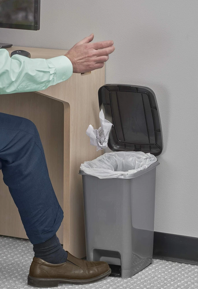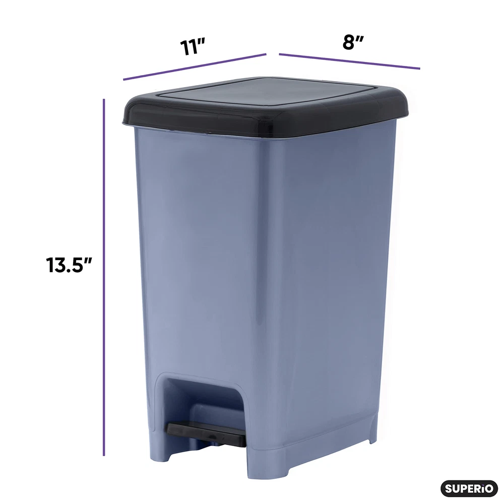 Plastic slim step trash can has a space-efficient shape that fits perfectly in tight spots, like between cabinets. The step-on feature allows for hands-free operation so your hands stay clear of the can and waste inside. Perfect For Tight Spaces - Do you need a garbage can that fits next to your desk or next to the bathroom sink? Then you’ve found the perfect lidded trash can for your needs! Bucket Handle Prevents Bag Slipping - We’ve all been there. You go to put a new bag in your trash can only to have the bag crumple inside the second you put any weight in it. This garbage pails bucket handle feature prevents that annoying scenario from ever happening to you again. Simple And Easy to Clean - Trash cans can get gross quickly, which is why we offer a trash can that allows you to get into nooks and crannies without breaking a sweat! Comes In 5 Different Colors - We have a color to suit every preference! No matter the decor style, of these trash can colors will work in your space. Zero Chance Of Rust - Unlike stainless steel trash cans, this chrome plastic garbage can will never rust! Our foot pedal garbage can will last you for years to come.