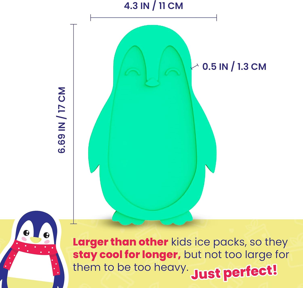Menu Other Items Feedbacks About Us Contact Us Add To Favorites Slim Ice Packs for Lunch Boxes Kids - 3-Pack Long-Lasting Penguin Lunch Box Ice Packs for Kids - Slim Reusable Ice Packs for Lunch Boxes, Lunch Bags, and Coolers - Multicolored (Penguins) TRUST: Founded in 2015, Healthy Packers is based in Bay Harbor, Florida. We developed these super-cute, reusable lunch ice pack for our families, and know you’ll enjoy it with yours! Questions? Comments? Our US-based team is ready to help! KEEPS FOOD & DRINKS COLD FOR LONGER: Your ice packs for kids lunch box freeze quickly, and help food and beverages stay cold for up to 5 hours — ideal for school, work, picnics, game day, and more. PERFECT SIZE: Measuring just about 0.5” thick, and about 4.3" wide and 6.7" tall, each slim ice pack fits perfectly into any lunch bag or cooler and leaves maximum room for food and drinks. FUN & EASY: Our small ice packs for lunch box, are fun to look at and even play with! They are also super durable and very easy to clean. What's not to love about them?! SAFETY FIRST: Grab a thin lunchbox ice pack for kids and be free of worries! They are BPA-Free, non-toxic and made with food-safe materials only. TSA DISCLAIMER: Healthy Packers Long-lasting Kids Ice Packs for Lunch Bags can be brought through TSA security checkpoints when fully frozen or otherwise stored in checked baggage. Kids Lunchbox Ice Packs Cold Pack for Lunch Box. Item Specification Closure Type Lid Style 3-Pack (Penguin) Capacity 4 Hours Number of Items 3 Unit Count 3.0 Count Color 3-Pack (Penguin) Special Feature Reusable Item Weight 13.1 ounces Shape 3-Pack (Penguin) Age Range (Description) Kid Material Type Free BPA Free Item Form Rectangular Package Dimensions 6.81 x 4.33 x 1.89 inches Shipping FREE FREE SHIPPING We are always working hard to ensure your package arrives as soon as possible. Please understand that some factors like weather, high postal traffic, and the performance of shipping companies are outside of our control. We offer free shipping to the lower 48 states. We do not accept P.O. Boxes. Please provide a physical address. If you have a problem or question regarding your transaction please contact us immediately. We will work with you to resolve any problem you may have. Thank you
