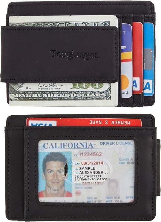 About this item 🍀 Magnetic Closure 🍀 You Work Hard for Your Money: That’s why we use 4 Rare Earth Magnets (instead of 2) to hold on to your cash; We tested the rest and now you can buy the best; Rare-Earth magnets were developed in the ’70s and are made from alloys of rare earth elements; They are the strongest type of permanent magnets 🍀 We Made This One Ourselves: After testing the competition we knew we had to develop our Money Clip; Finding the right factory wasn’t easy but once the prototype was completed we knew we had a winner using Full Grain Napa Cow Leather, detailed stitching, and secure card slot holders 🍀 Size and Features: The wallet is 4”x 3” and fits nicely in your front pocket; Comes with 3 card slots, 2 larger slots, and an I.D. holder 🍀 RFID Blocking Wallet: Tested for 13.56 MHz Frequency in which the credit cards operate.125 kHz Proximity Cards, RFID signals are NOT blocked