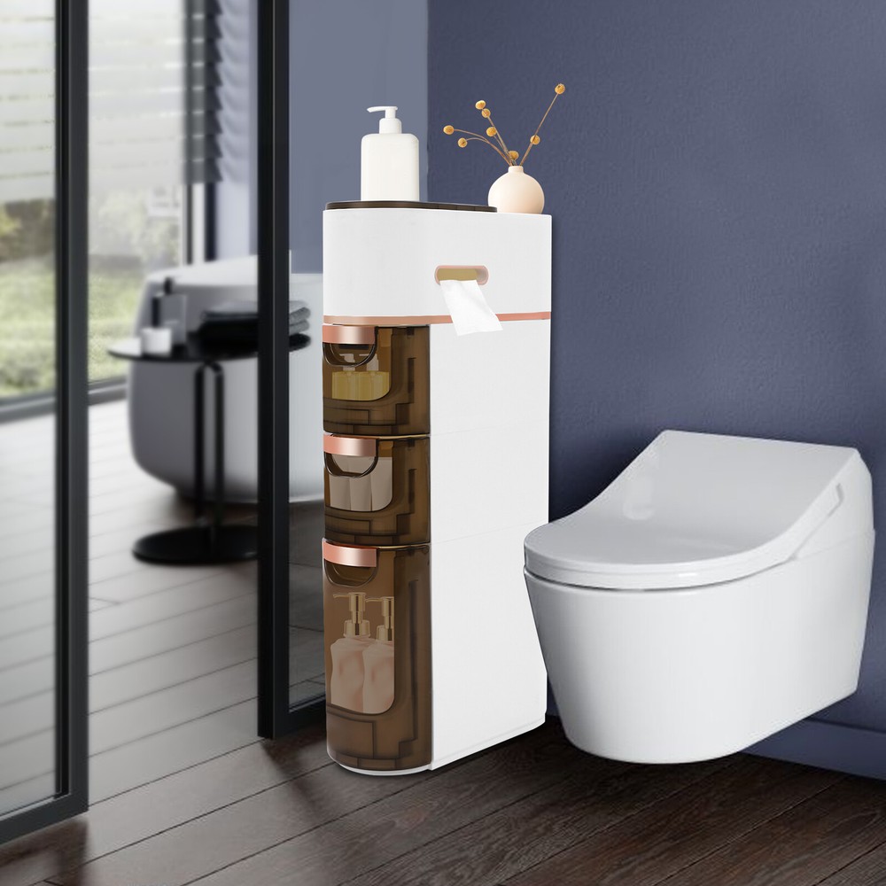4 Tier Narrow Bathroom Storage Cabinet with Slim Drawers