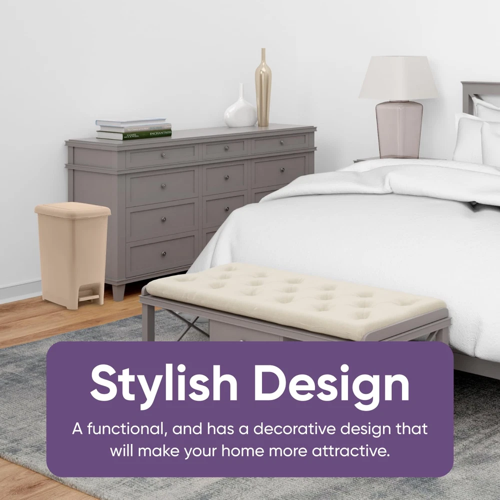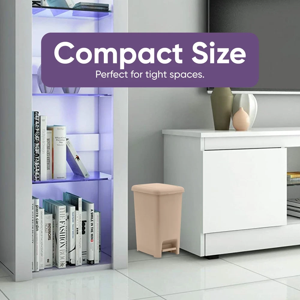 Store New Arrivals Add to Favorite View Feedback Contact Slim Trash Can with Foot Pedal – 4 Gallon Step-On Trash Can, Small Plastic Garbage Can with Lid, Trash Can for Bathroom, Bedroom, RV, Kitchen, Office, Patio, or Dorm – Beige Description Item model number 2 Room Type Bathroom,Bedroom,Office Capacity 4 Gallons Number of Items 1 Color 4 Gallon Special Feature Quiet Close, Pedal Product Dimensions 9 x 12 x 15.5 inches; 1.76 Pounds Material Plastic Country of Origin Italy Shape Rectangular Opening Mechanism Step-On Recommended Uses For Product Bathroom,Desk Finish Type Beige Manufacturer Brand Perfect For Tight Spaces - Do you need a garbage can that fits next to your desk or next to the bathroom sink? Then you’ve found the perfect lidded trash can for your needs! Bucket Handle Prevents Bag Slipping - We’ve all been there. You go to put a new bag in your trash can only to have the bag crumple inside the second you put any weight in it. This garbage pails bucket handle feature prevents that annoying scenario from ever happening to you again. Simple And Easy to Clean - Trash cans can get gross quickly, which is why we offer a trash can that allows you to get into nooks and crannies without breaking a sweat! Comes In 5 Different Colors - We have a color to suit every preference! No matter the decor style, one of these trash can colors will work in your space. Zero Chance Of Rust - Unlike stainless steel trash cans, this chrome plastic garbage can will never rust! Our foot pedal garbage can will last you for years to come. Product Description Here at Superio, we strive to constantly innovate new designs, technologies, and materials to create always improving cleaning supplies, household storage supplies, kitchen products, and bath products. We care about making our customer’s lives easier and simpler at home and beyond. Many consumer goods companies look to take shortcuts and eliminate key product features that cost a bit more time to manufacture but make the product superior to the competition and better for customers everywhere. We don’t believe in taking shortcuts or getting rid of features that limit functionality and usefulness. It’s our job to make your life easier so you can spend less time cleaning and organizing and more time enjoying your home and your life. Our product help make your home more comfortable, inviting, and a place to enjoy with your family, friends, and loved ones. Try Superio products today and see the difference for yourself. THE BEST COMPACT TRASH CAN Our small plastic step can is versatile and aesthetically pleasing while also being a great fit for your bathroom, kitchen sink, dorm, or anywhere in your home that space is tight. FOOT PEDAL This trash can features an extra-strong pedal that has been designed for easy use. Simply give it a push with your foot and you’re good to go! Once you’ve experienced this hands-free trash can, you’ll never be able to go back to pedal-less trash cans again. HIGH-QUALITY PLASTIC It is made of the highest quality, durable plastic available. While stainless steel may be flashier, this plastic product will last you years without breaking or rusting. NO INNER BUCKET NECESSARY This high-quality foot pedal trash can doesn’t require an inner bucket, allowing for up to 20% more space for your trash! This saves you money in the long run, as you’ll be able to get more use out of your trash bags. MULTI PLACES USE Bath: This step on a trash can is a great size for the space between the toilet and the shower or next to the bathroom sink. Kitchen: Use this compact garbage can in the cabinet under the kitchen sink to keep your kitchen clutter-free. Dorm/Bedroom: This garbage pail is a great option for bedrooms, as you don’t want to let trash in your room stack up. Office: This small trash can fits seamlessly under any modern desk! The Perfect Trash Bin Keep this elegant trash bin in your bathroom, underneath your desk, or in any small space. Dimensions: Overall Height - Top to Bottom: 13.5". Overall Width - Side to Side: 8". Overall Depth - Front to Back: 11". Purpose: Use in kitchen, dorm, bedroom, office, bathroom, and wherever suited Material: durable plastic Color: Beige Easy Open Lid Lid opens easily and closes gently. Neat Color and Size This trash can's neat shape and classic color give an elegant and modern look to its surroundings. Foot Pedal Strong foot-pedal that opens lid easily with a step of your foot.this trash cans neat shape and classic color give an elegant and modern look to its surroundings ABOUT US We offer the best prices around on high quality products. Our E-store includes media such as books, movies, music and games while offering electronics, toys, sporting apparel, clothing, tools, general home, garden items and more. SHIPPING We are always working hard to ensure your package arrives as soon as possible. Please understand that some factors like weather, high postal traffic, and the performance of shipping companies are outside of our control. We offer free shipping to the lower 48 states and ship within 2 business days of payment, usually sooner. We do not accept P.O. Boxes. Please provide a physical address. For shipping outside of the continental USA, we only use eBay's Global Shipping Program.The item is shipped to KY and then sent to the rest of the world. International customers are responsible for all duties and taxes. Continue to check out in order to calculate costs for shipping the item to your country. Messages regarding eBay's Global Shipping Program MUST be directed at eBay EXCLUSIVELY. RETURNS We offer a 30-Day Return Policy on items which you are not completely satisfied with. You have the option for a full-refund or an exchange of the item. No returns are available on items shipped outside of the USA. PAYMENT We accept PayPal. CONTACT US This page content is yet to come Please ad us to your favorite seller and visit again later Thank You CUSTOMER SATISFACTION We try our very b