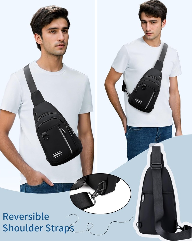 This sling bag is a game-changer—super versatile and stylish for both men and women! The adjustable straps make it super comfortable, whether you wear it crossbody or on one shoulder. It fits way more than expected with smart pockets for phones, keys, and even an iPad mini. The nylon material feels durable yet lightweight, and the reversible design adds extra value. Perfect for travel, errands, or daily use—super practical without sacrificing looks!