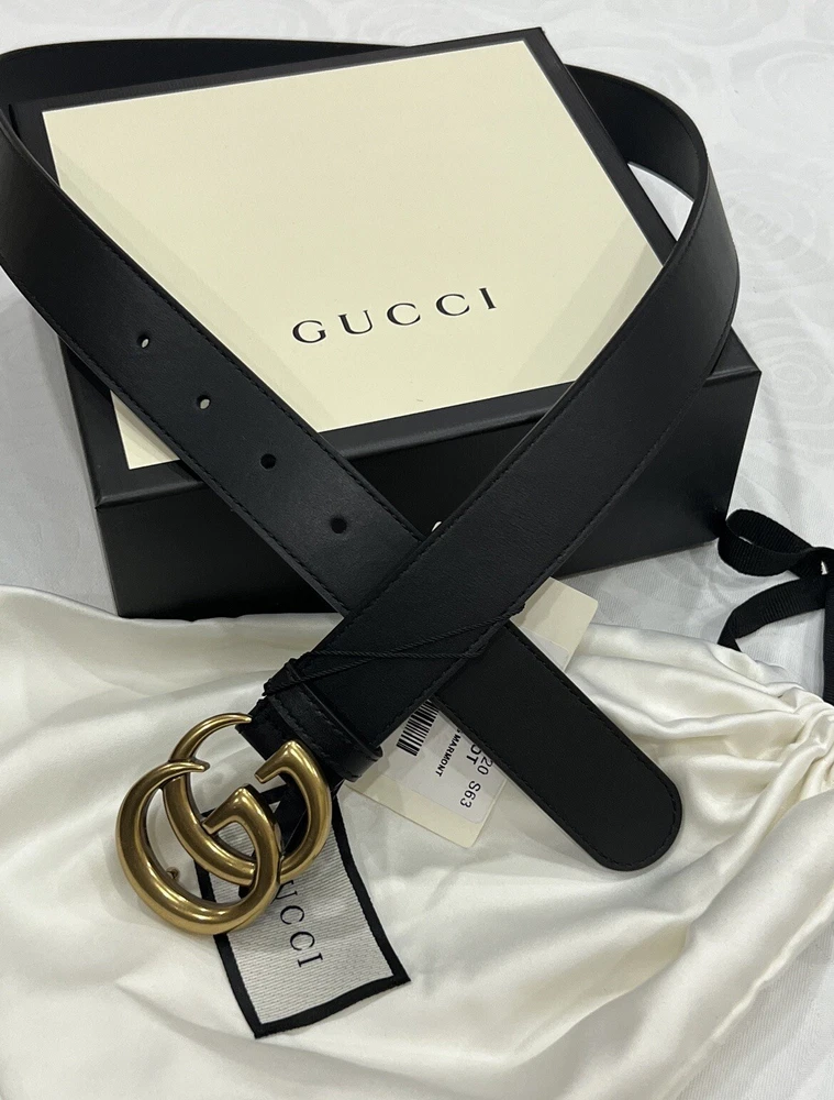 GUCCI unisex Black leather Belt Skinny 1 inch width leather Size 80/32 Fits 2-4 in women Pants/Jeans. 28-30 in men’s Comes with BOX and Dust bag exactly as shown in pictures Like new never worn in great condition Same day fast shipping! Feel free to ask any questions you have before the purchase