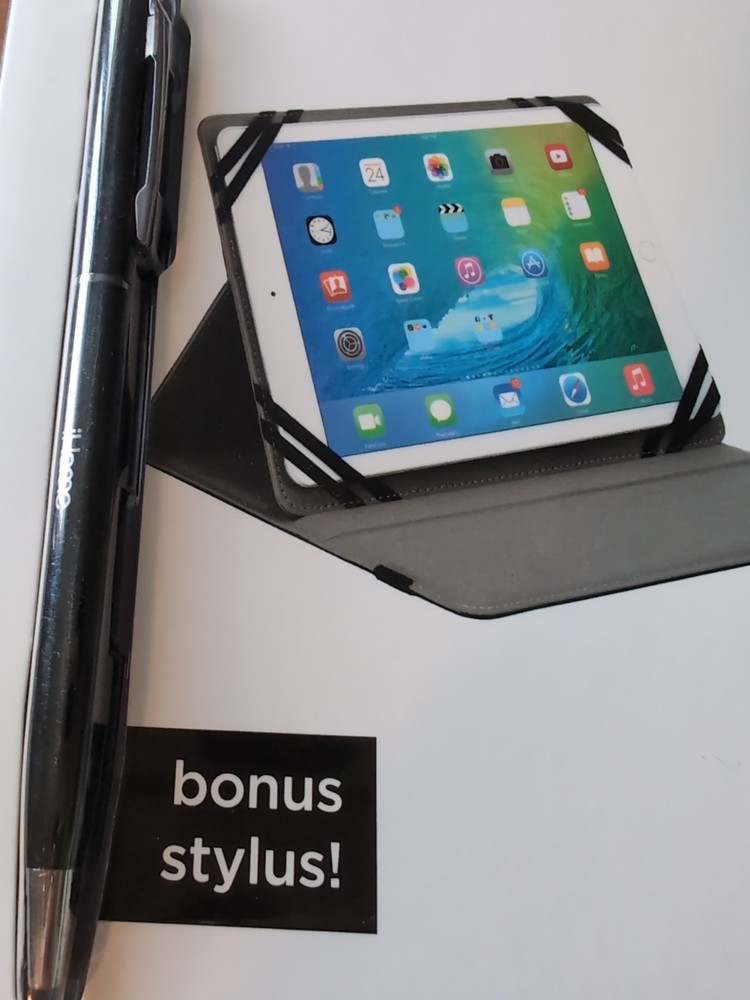 New Universal Slim Case for iPad and 7-8" tablets with a bonus stylus..Easy view universal adjusted strap fit full protection. In unopened packaging.
