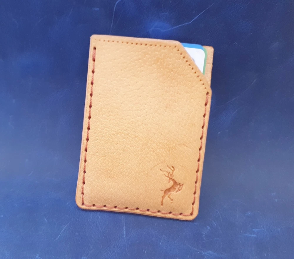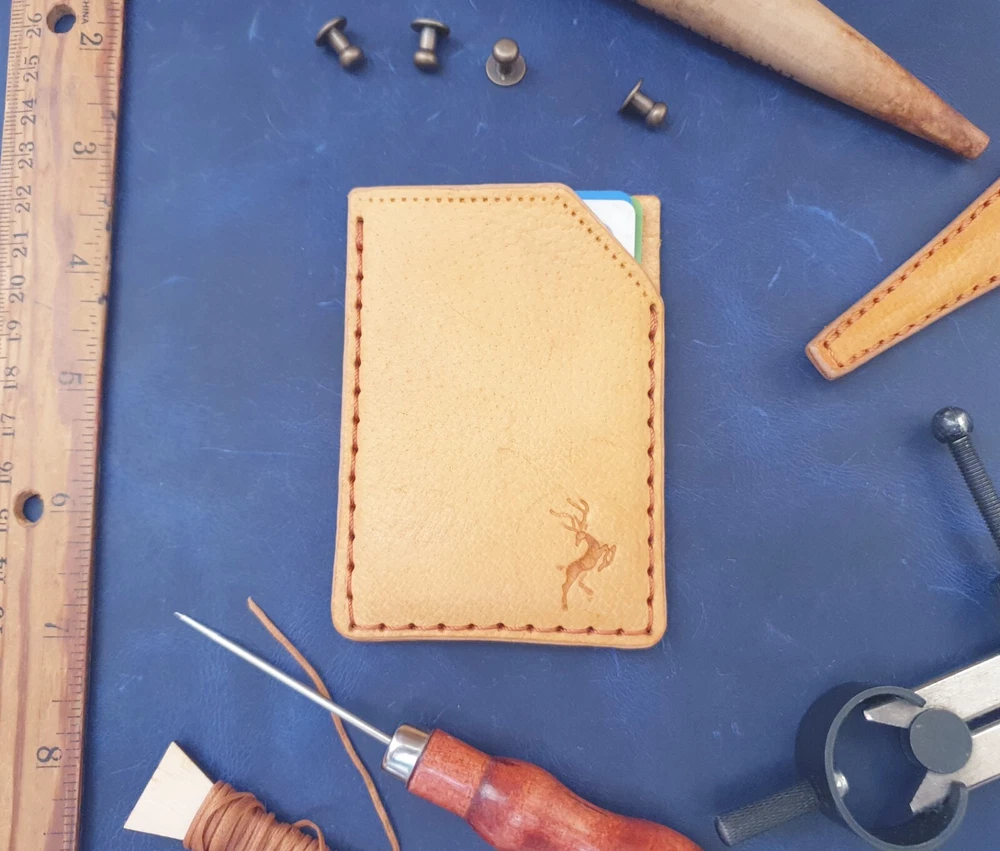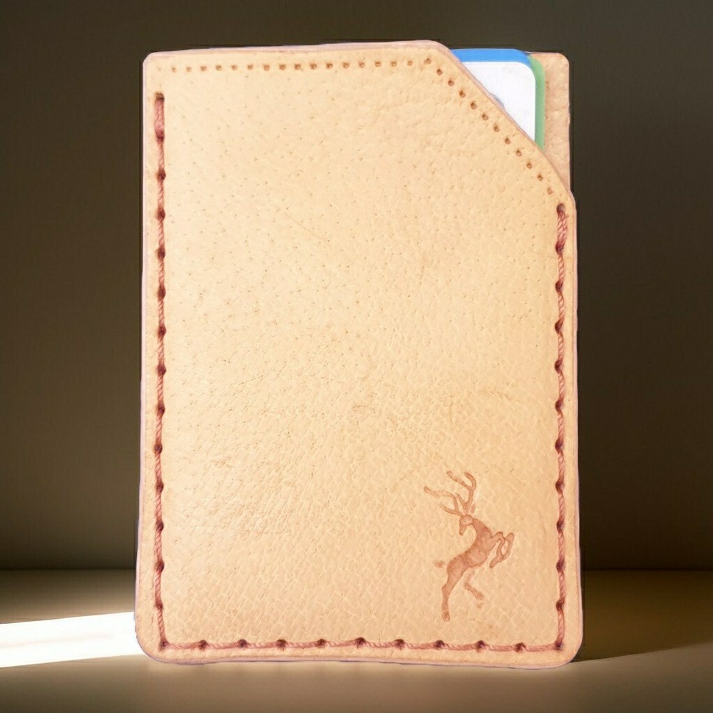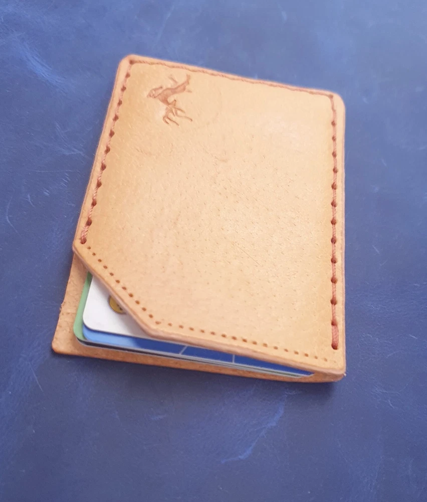 Classic handmade leather card holder. High quality vegetable tanned leather with a thickness of 1.5 - 2 millimeters thick (4 - 5 oz). Two slots for bank cards and folded cash. It is possible to personalize the product. Add your name or text. Engrave your company logo or other image. Please discuss in advance if a specific text or picture is available. Size: 93mm × 66mm / 3.7 in × 2.6 in Weight: 20g./ 0.705 oz. Color - natural, beige. Each product in the photo is a product completely created in the Craft KRK Krakow workshop in Poland. Similar models available. Other colors. Welcome to my needlework store. Note: The color of the product you see on the screen may differ slightly from the color in person due to various factors: Individual screen settings on your phone or computer. The time and place of the product shooting: a photo on the street on a sunny day will differ from a studio photo or a photo from the workshop, a photo on your phone differs from a photo on a professional camera. The difference in the leather batch itself - during the manufacture of the leather material itself, the tone of each batch may differ by half a tone up or down, which is due to the production process itself. We receive the finished color from the leather manufacturer. In case of significant differences in color, we will notify you and coordinate the order.