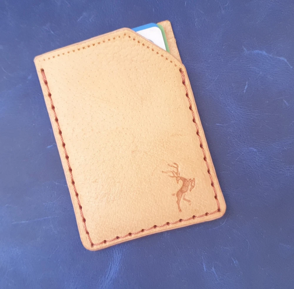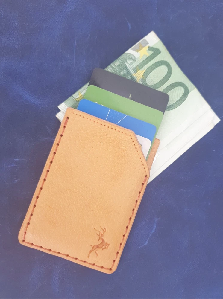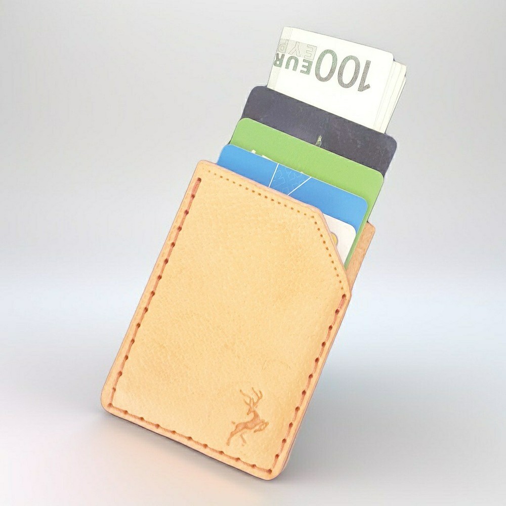 Classic handmade leather card holder. High quality vegetable tanned leather with a thickness of 1.5 - 2 millimeters thick (4 - 5 oz). Two slots for bank cards and folded cash. It is possible to personalize the product. Add your name or text. Engrave your company logo or other image. Please discuss in advance if a specific text or picture is available. Size: 93mm × 66mm / 3.7 in × 2.6 in Weight: 20g./ 0.705 oz. Color - natural, beige. Each product in the photo is a product completely created in the Craft KRK Krakow workshop in Poland. Similar models available. Other colors. Welcome to my needlework store. Note: The color of the product you see on the screen may differ slightly from the color in person due to various factors: Individual screen settings on your phone or computer. The time and place of the product shooting: a photo on the street on a sunny day will differ from a studio photo or a photo from the workshop, a photo on your phone differs from a photo on a professional camera. The difference in the leather batch itself - during the manufacture of the leather material itself, the tone of each batch may differ by half a tone up or down, which is due to the production process itself. We receive the finished color from the leather manufacturer. In case of significant differences in color, we will notify you and coordinate the order.