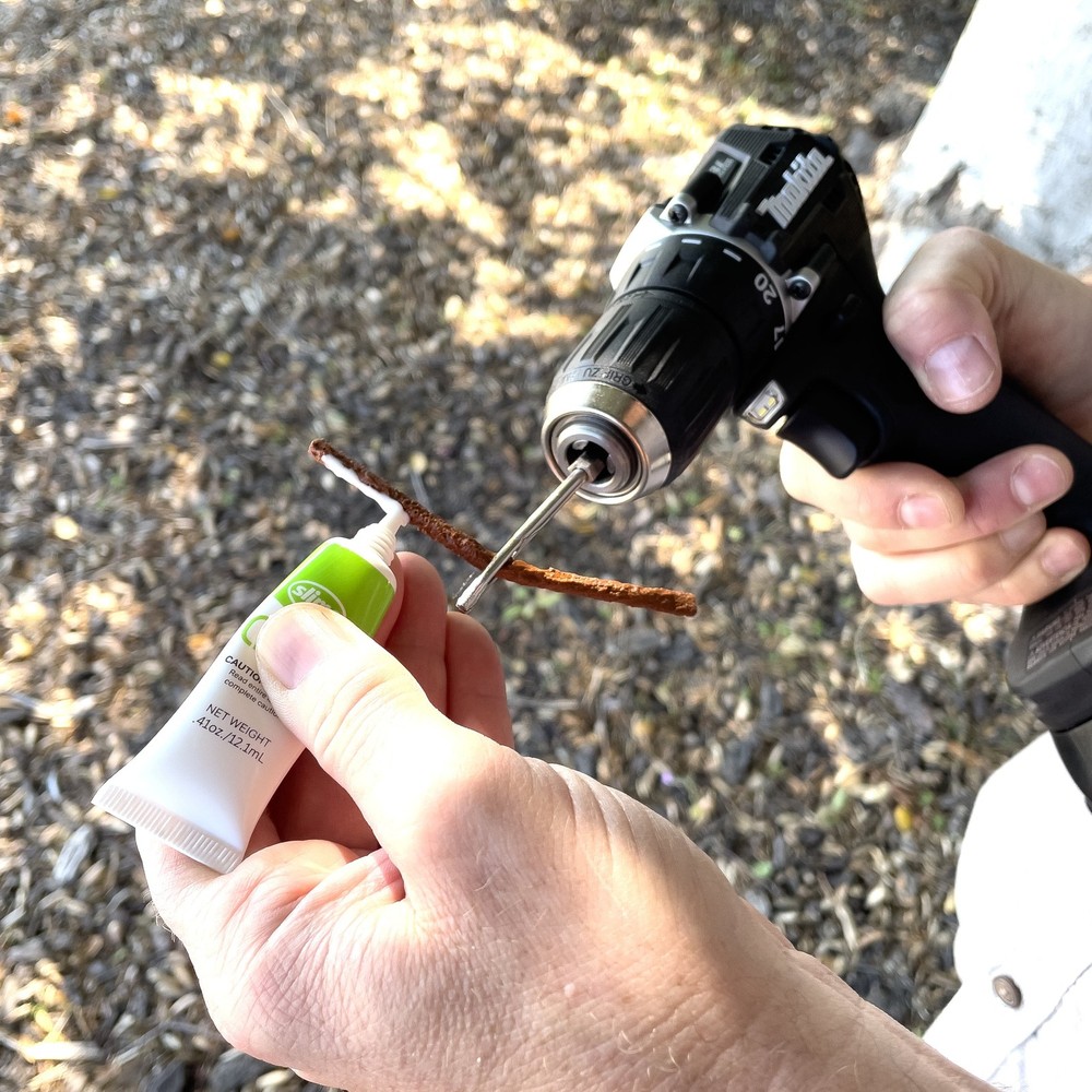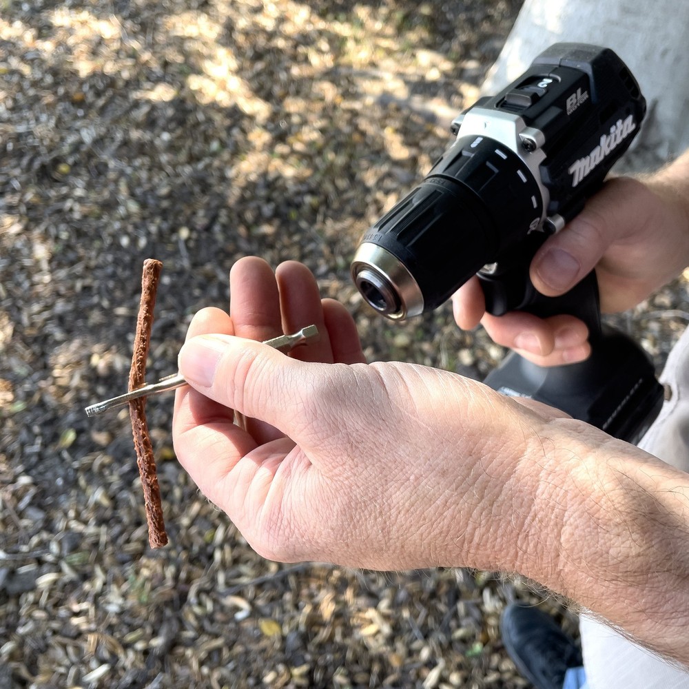Let your drill do all the work! Slime's Drill Bit Tire Plug Kit is the easiest tire plug solution on the market. With high-strength reamer and plugger bits that work with all drills, durable tire plugs and Plug Bond, this 9-piece set eliminates all the physical effort (i.e. hard labor!) previously required to plug a tire. The drill makes it so easy, you don't even need to remove the tire from the vehicle to make the repair. Once you try the Slime Drill Bit Tire Plug Kit, you will never go back to repairing the old way! Easiest tire plug solution on the market Slime 9-piece set includes: (1) Reamer Drill Bit, (1) Plugger Drill Bit, (5) Brown Tire Plugs (durable, 7-ply, odorless), (1) .41 fluid ounces of Plug Bond (1), and a compact case to keep your kit together Works with all drills (including impact!) High strength, durable steel construction