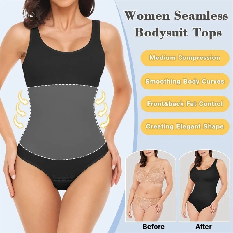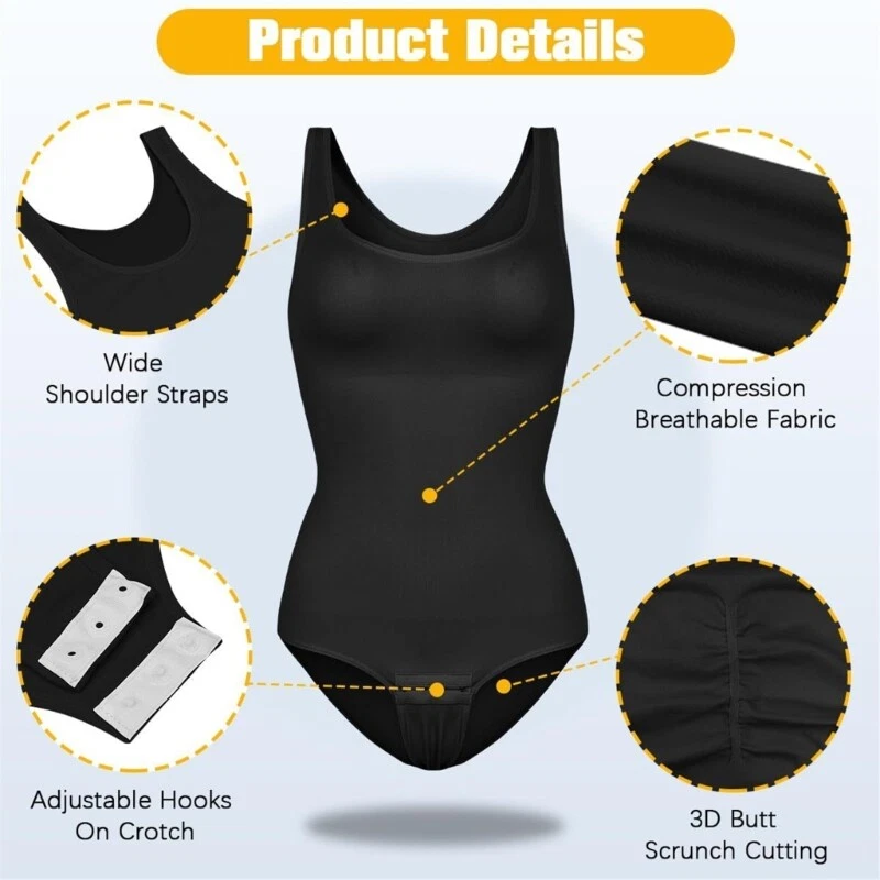 Features: Experience great blend of and functionality with our Tanks Top Bodysuit for Women, feature tummy control to enhances your body and a round neck designs for a touch of elegant. from high stretch nylon fabric, this sleeveless bodysuit offers a breathable and skinfriendly fit, ensuring comfort throughout day while accentuating your natural shape. Great for fashion forward women and postpartum mother looking for a confidence this bodysuit caters to different body types with its 5XL size Whether you're dressing up for a party, heading out on a date, or simply enjoy everyday wear, this bodysuit pairs effortlessly with skirts or jeans to showcase your confident charm. Elevates your wardrobe with this minimalists bodysuit, a must have garment that combines practicality with the latest trends for a look on any occasion. Specifications: Component: Chinlon Optional Color: Black, White, Coffee Size: S SizeM/L, SizeXL/XXL, 3XL/4XL, 5XL(Chinese Size,follow the size chart to please) Size S Bust:30cm(11.81inch) Waist:24cm(9.45inch) Hip:29cm(11.42inch) Length:68cm(26.77inch) Size:M/L Bust:32cm(12.60inch) Waist:26cm(10.24inch) Hip:32cm(12.60inch) Length:69cm(27.17inch) Size:XL/XXL Bust:33cm(12.99inch) Waist:28cm(11.02inch) Hip:33cm(12.99inch) Length:71cm(27.95inch) Size:3XL/4XL Bust:34cm(13.39inch) Waist:30cm(11.81inch) Hip:35cm(13.78inch) Length:73cm(28.74inch) Size:5XL Bust:36cm(14.17inch) Waist:32cm(12.60inch) Hip:36cm(14.17inch) Length:77cm(30.31inch) Package Includes: 1pc Bodysuit note: Please allow 1-3cm error due to manual measurement. please make sures you do not mind before you bid. Due to the differences between different monitors, the picture may not reflect the actual color of the item.
